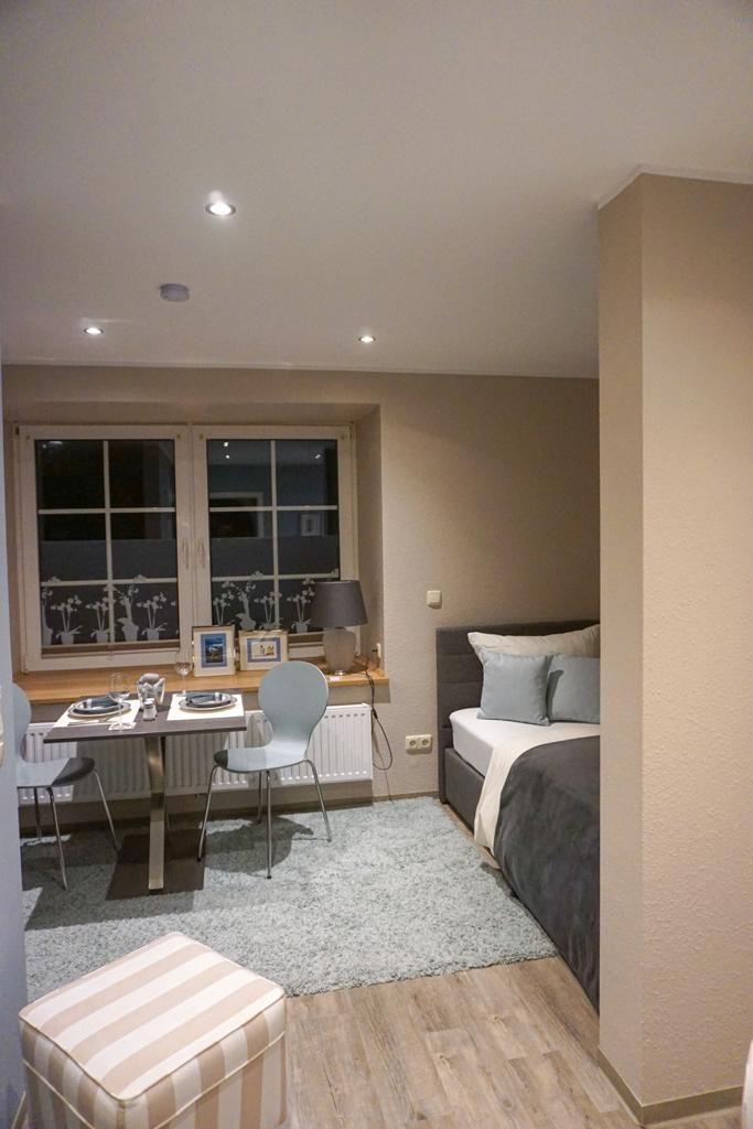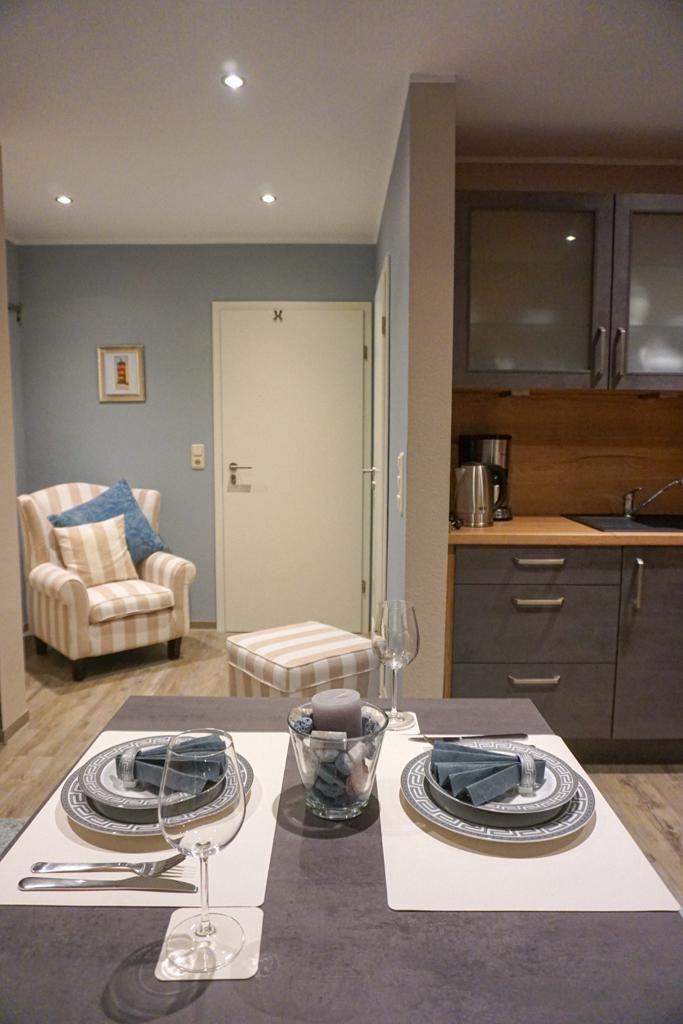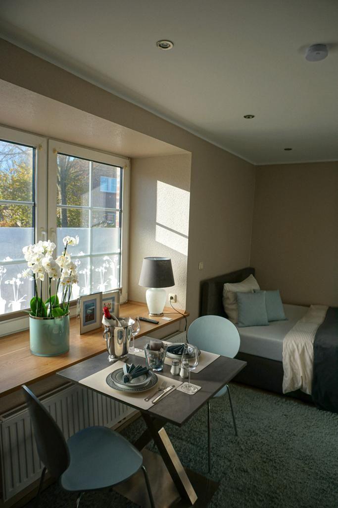 Das Apartment ist als modernes 1-Zimmer-Domizil konzipiert und überzeugt durch eine klare, funktionale Ausstattung. Ein 1,60?m breites, bequemes Bett, ein Fernseher sowie ein Essplatz für zwei Personen schaffen eine angenehme Wohnatmosphäre. Die kompakte Küche ist gut ausgestattet und ermöglicht die Zubereitung kleiner Mahlzeiten (eine Spülmaschine ist nicht vorhanden). Das angrenzende moderne Duschbad ergänzt die Wohnung. Dank der Lage im Erdgeschoss und der barrierearmen Gestaltung eignet sich die Wohnung auch für Gäste mit eingeschränkter Mobilität.
