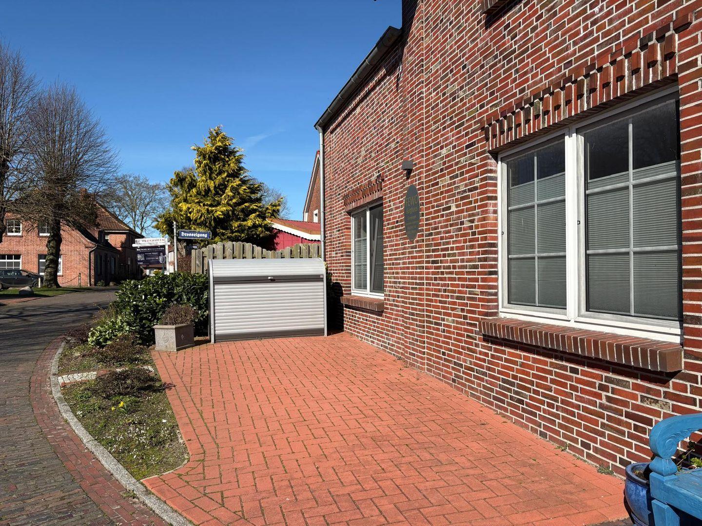 Die Ferienwohnung Burghaus 1 ist eine geschmackvoll eingerichtete 28?m² große Parterre-Wohnung in der liebevoll restaurierten ehemaligen Burgbrauerei im ruhigen Warfendorf Grimersum. Die Einraumwohnung mit einem Schlafbereich, eine ausgestattete Küche, ein modernes Duschbad sowie einen gemütlichen Essbereich bietet Platz für 2 Personen + Hund. Ein überdachter gemeinschaftlicher Außenbereich mit Gartenmöbeln lädt zum Entspannen ein.