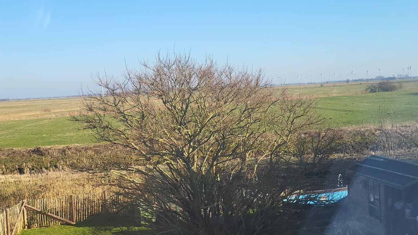Auf der Terrasse genießen Sie frische Nordseeluft und einen schönen Landschaftsblick. WLAN, Fahrradschuppen und ein PKW-Stellplatz sind vorhanden.