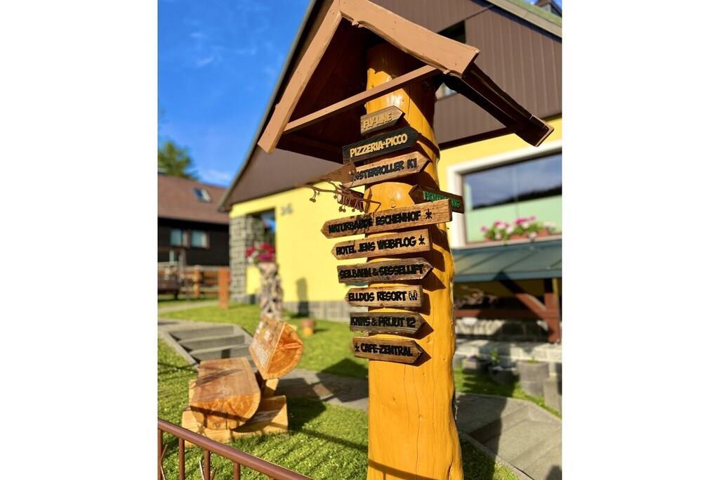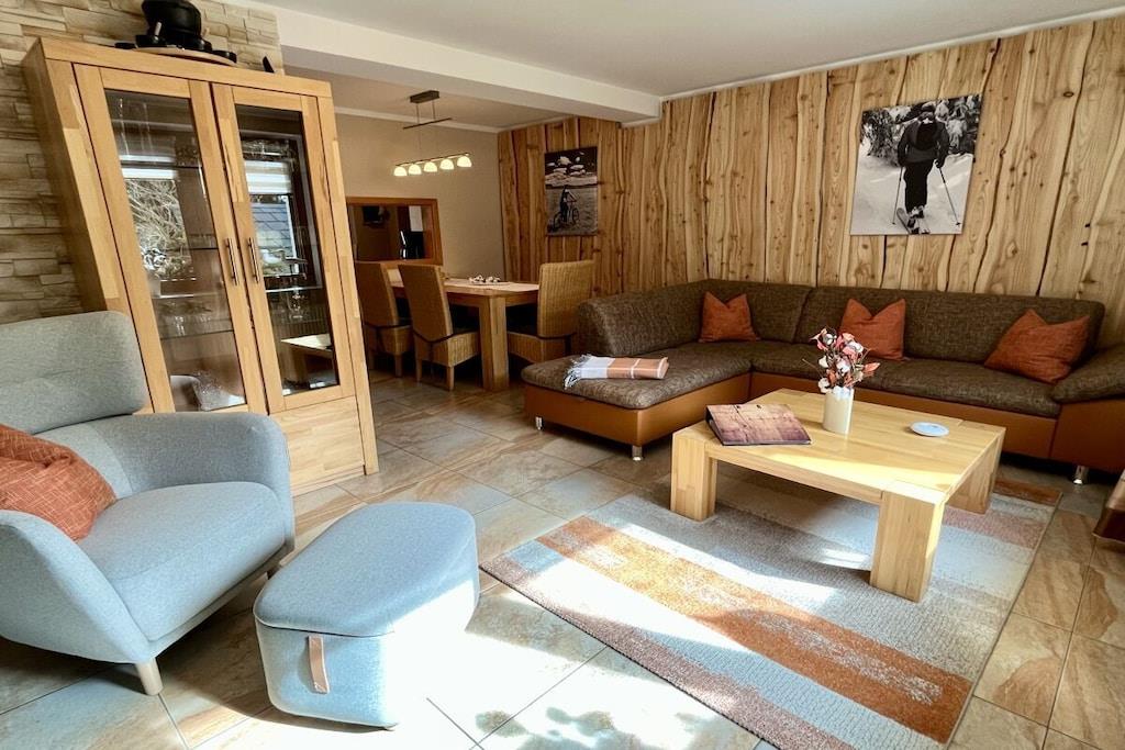 Right on the ski and toboggan slope. Best location in the Oberwiesenthal spa town. View from the sun terrace directly onto the Fichtelberg
