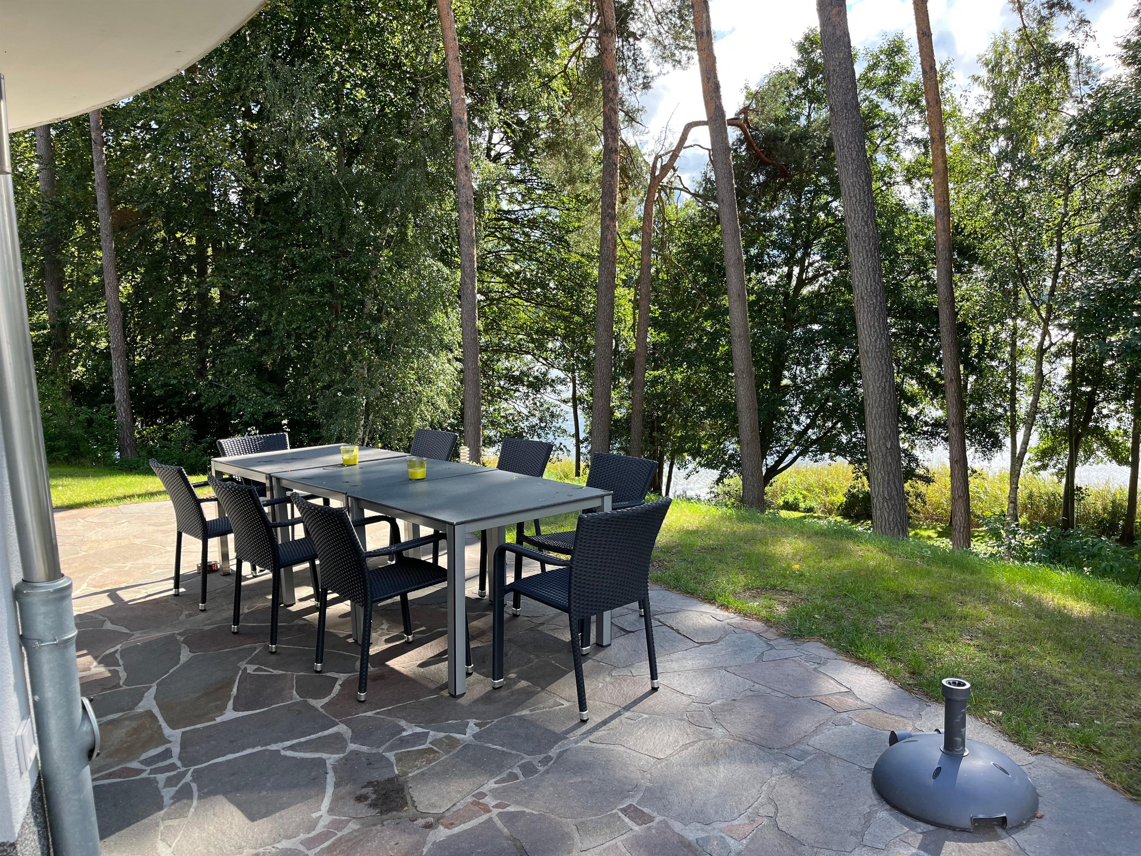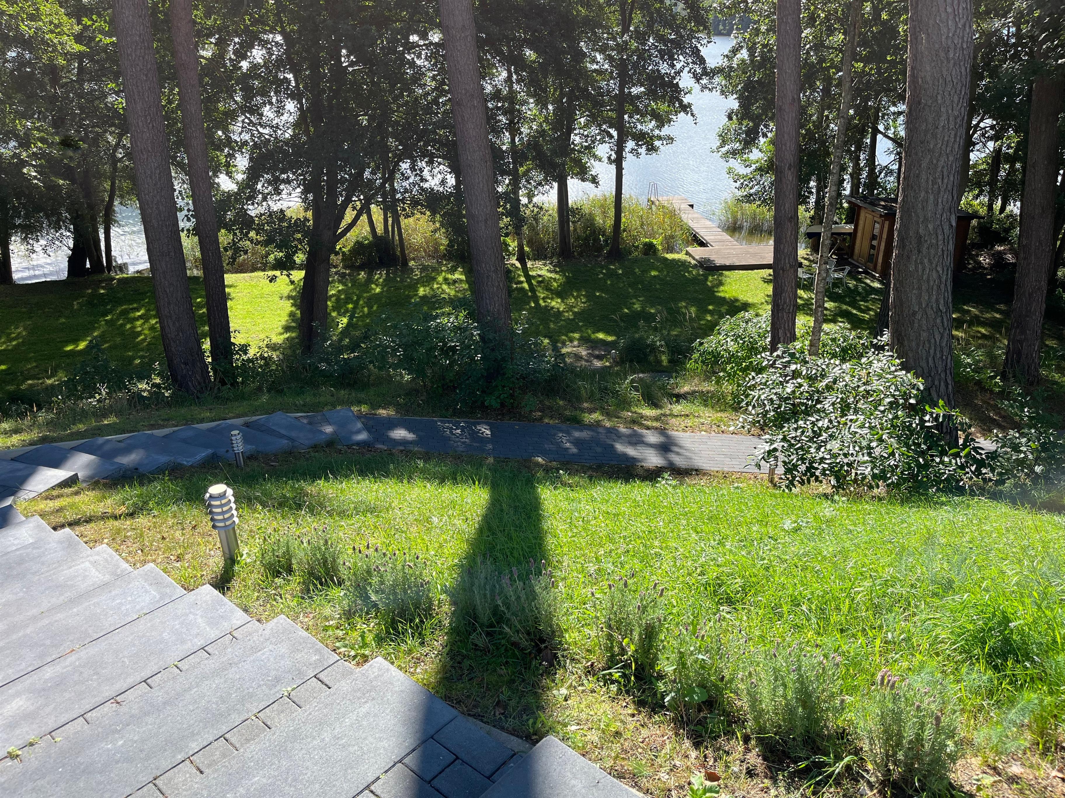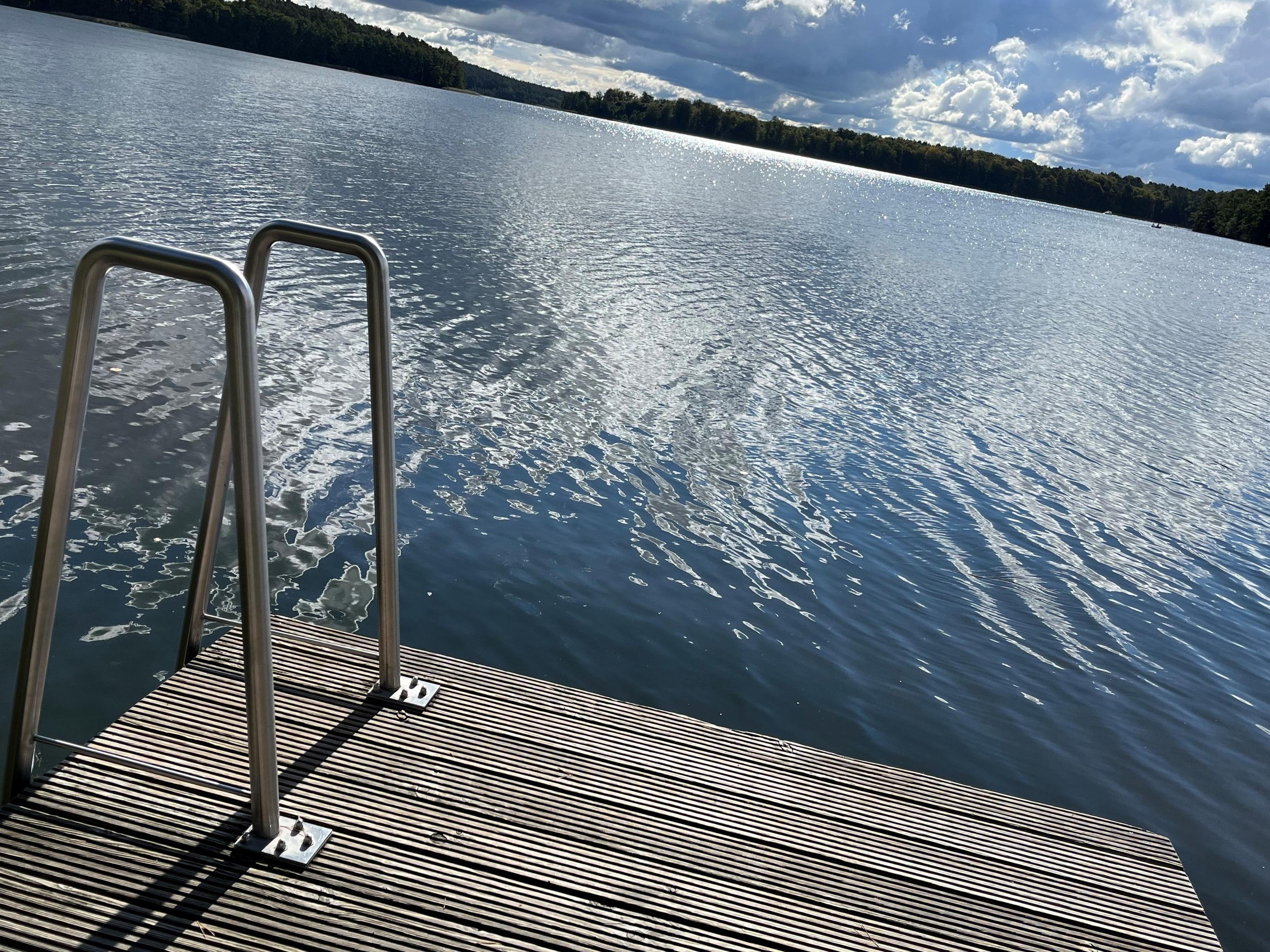Zum Haus gehört ein privater Steg mit Badeleiter, der direkten Zugang zum See ermöglicht. Ein Gartenhaus hält ein Kajak und zwei Stand-up-Paddle-Boards bereit, inklusive Schwimmwesten (Nutzung auf eigene Gefahr). Auf der Terrasse erwarten Sie bequeme Sonnenliegen, ein Sonnenschirm und ein gemauerter Grill für entspannte Stunden im Freien.