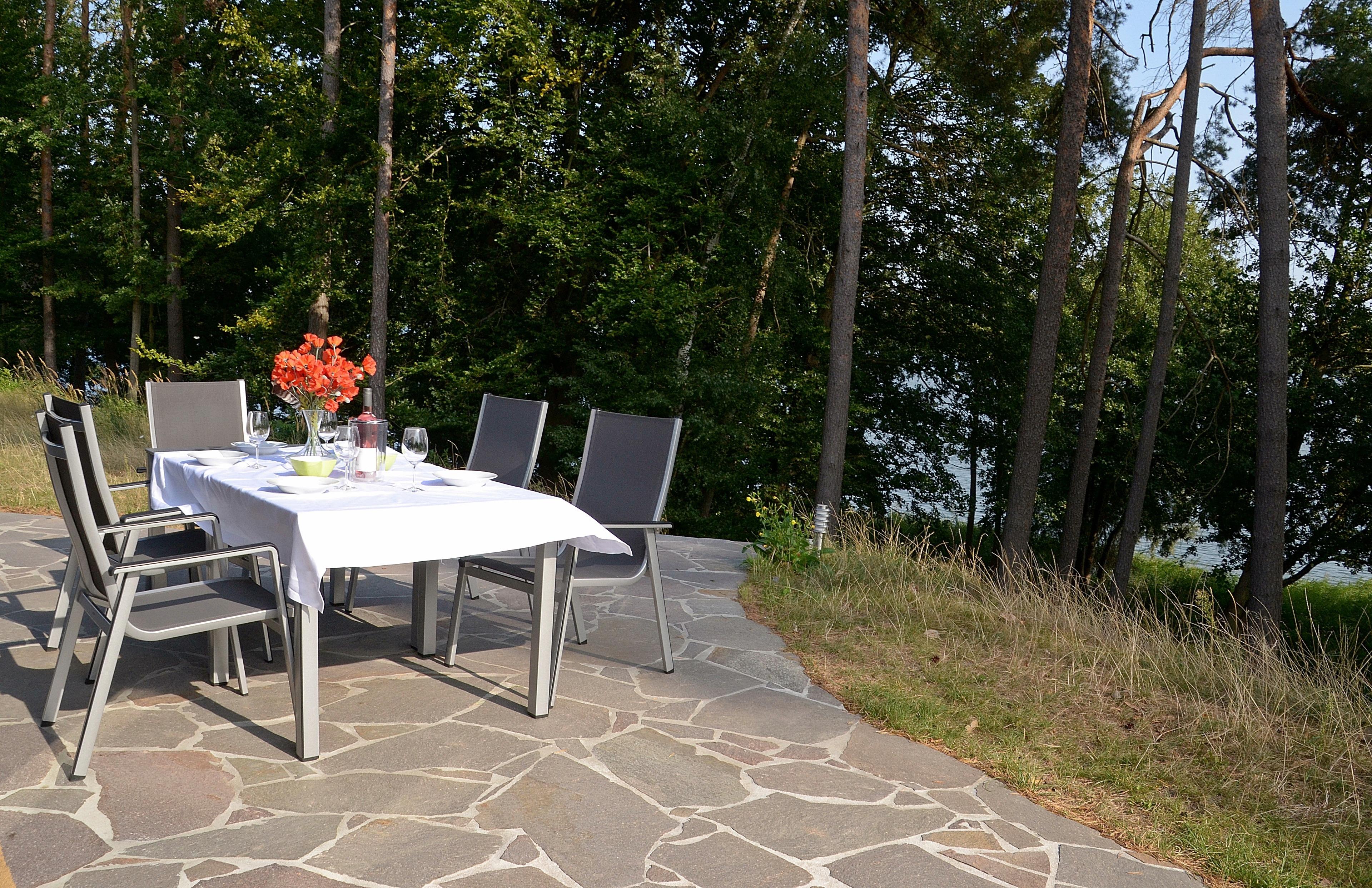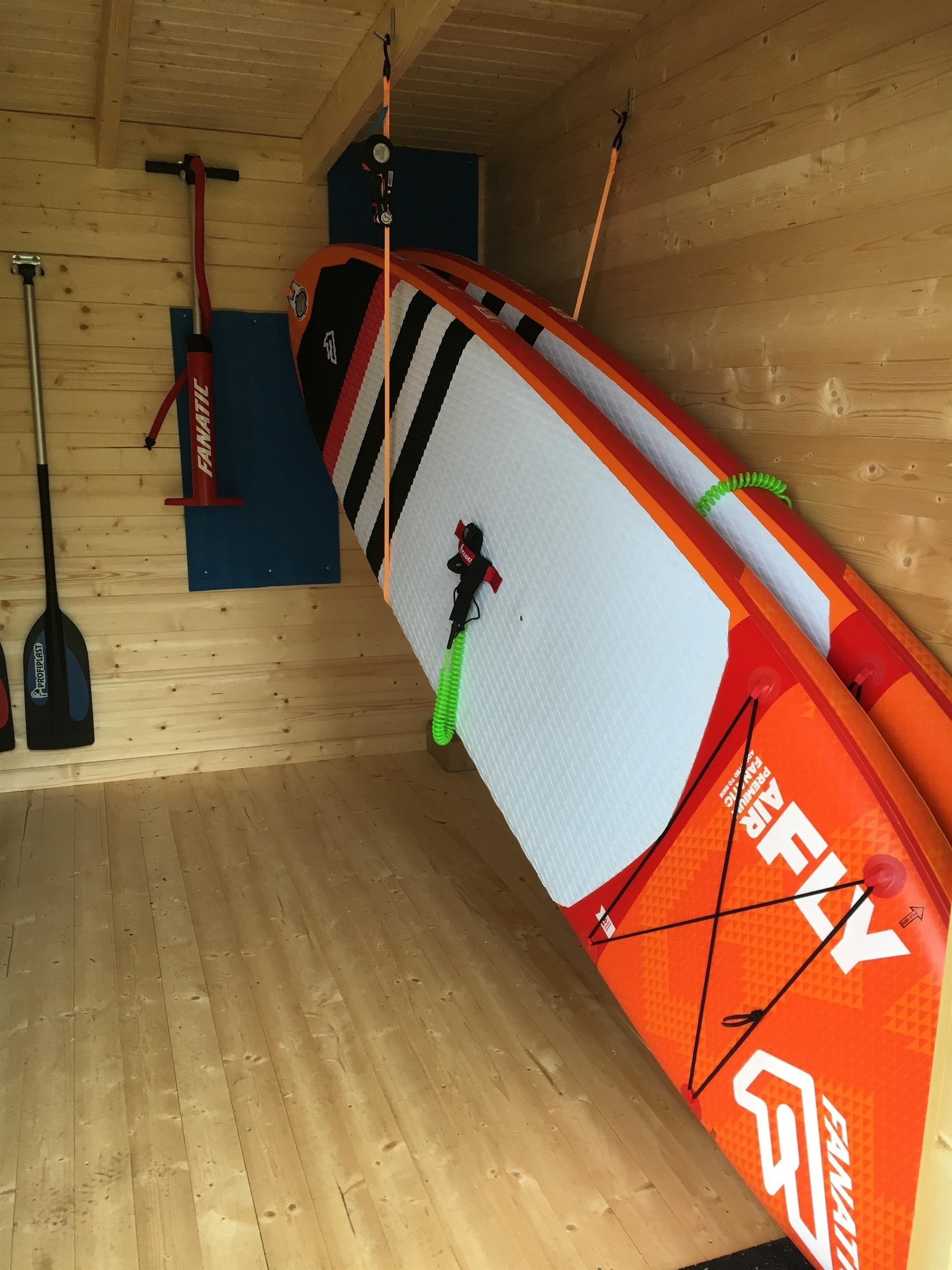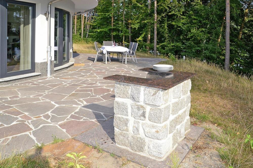 Zum Haus gehört ein privater Steg mit Badeleiter, der direkten Zugang zum See ermöglicht. Ein Gartenhaus hält ein Kajak und zwei Stand-up-Paddle-Boards bereit, inklusive Schwimmwesten (Nutzung auf eigene Gefahr). Auf der Terrasse erwarten Sie bequeme Sonnenliegen, ein Sonnenschirm und ein gemauerter Grill für entspannte Stunden im Freien.