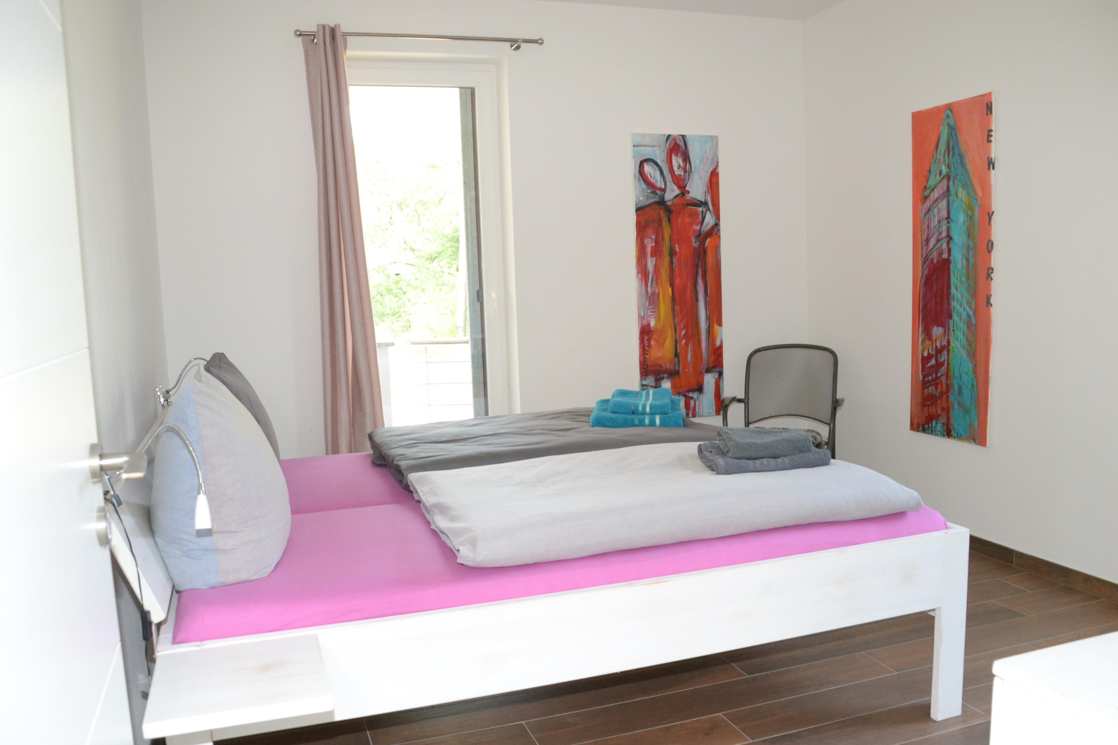 Die Villa Allegria bietet mit ihren vier gleichgroßen großzügigen Schlafzimmern - zwei im Erdgeschoss und zwei im Obergeschoss - komfortable Schlafmöglichkeiten. Die Doppelbetten (180 cm x 200 cm) sind jeweils mit zwei 90 cm breiten Matratzen ausgestattet.