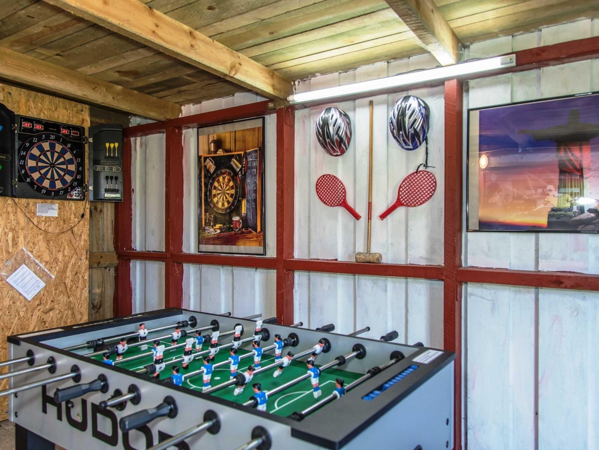Ebenfalls stehen eine Tischtennisplatte, ein Kicker Raum, mehrere Gokarts, eine Softdartscheibe, ein großer Buddelkasten und ein Riesentrampolin kostenfrei zur Verfügung. Die Internet-WLAN-Verbindung ist ebenfalls kostenlos. Der große Garten ist ideal geeignet zum Spielen oder Relaxen.