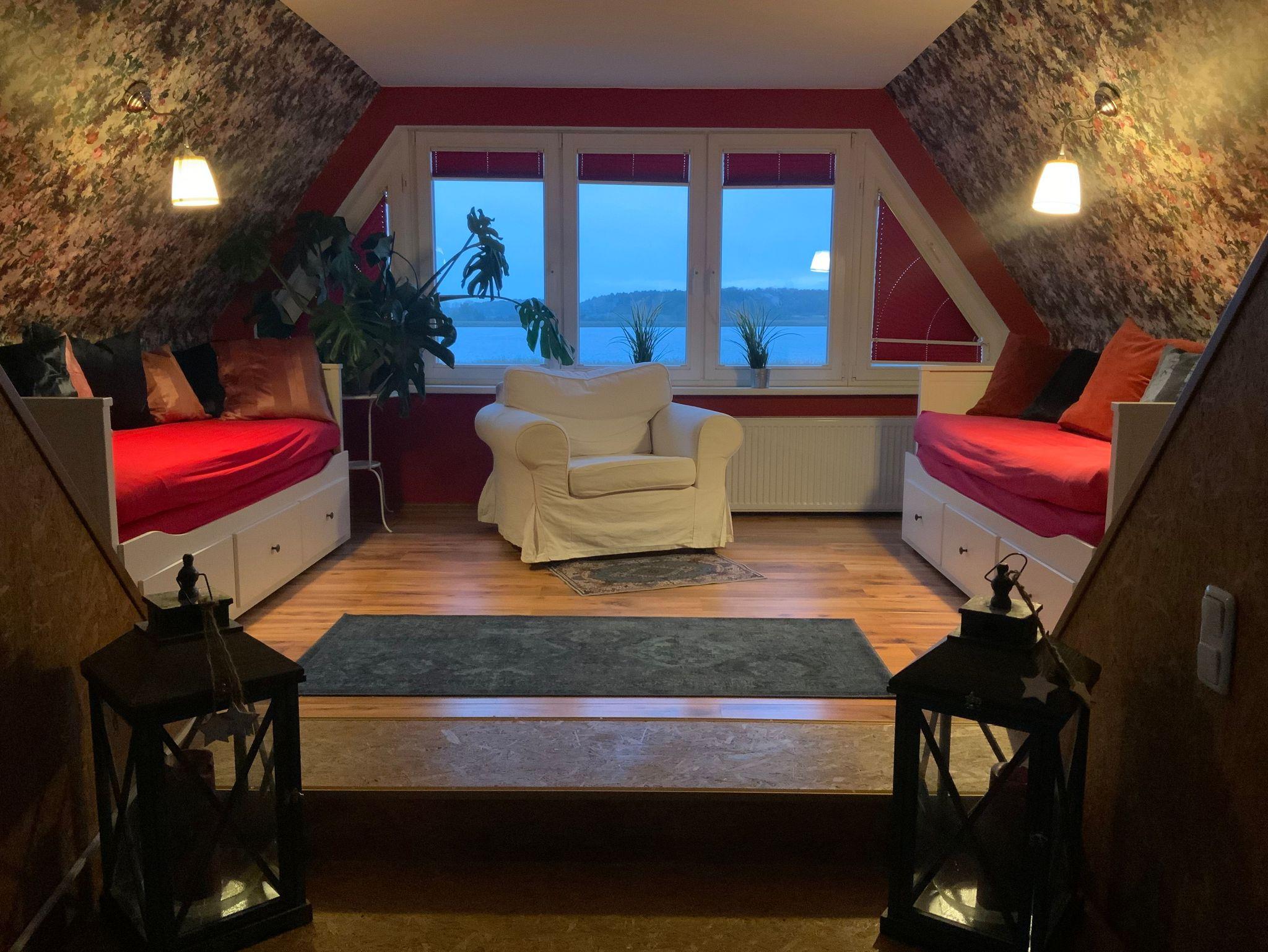 Das absolute “Highlight” des Hauses ist der Wintergarten. Man fühlt sich wie in freier Natur. Auch bei nicht so tollem Wetter ist es ein Genuss von hier aus, natürlich geschützt, die Vögel oder den Sonnenuntergang über dem Peene-Strom zu beobachten. Durch die Großzügigkeit des Hauses kann man sich übrigens auch mal ohne Probleme aus dem Weg gehen. Für die kleinen Gäste steht Ihnen ein großer Sandkasten im Garten des Hauses zur Verfügung.