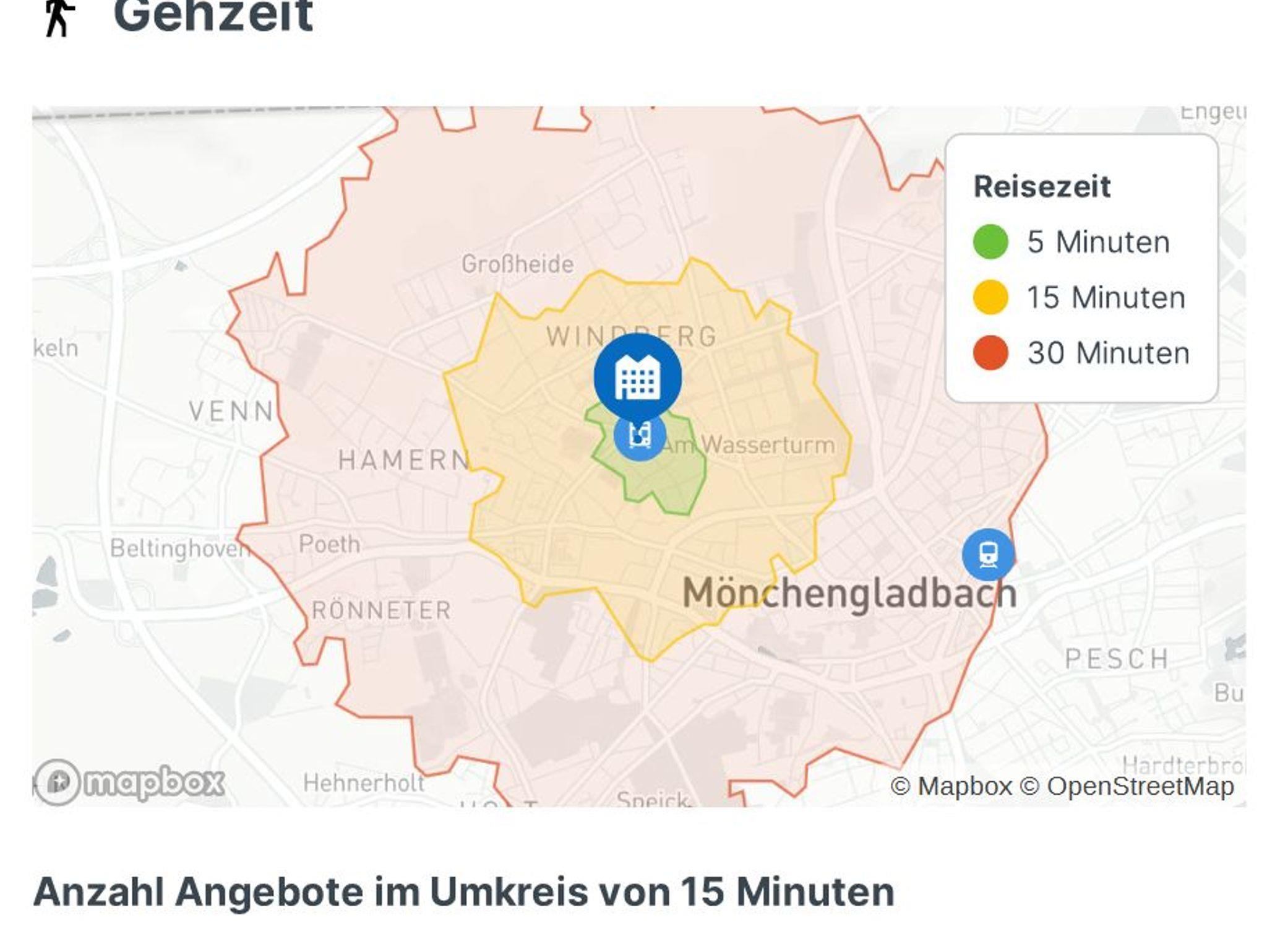 Das Haus, in dem die Wohnung liegt, ist ein modernes Mehrfamilienhaus. Das Gebäude bietet den Bewohnern durch seine Aufteilung und den eingebauten Aufzug Komfort auf verschiedenen Ebenen. Die Lage in einem städtischen Umfeld bietet eine gut ausgebaute Infrastruktur mit fußläufiger Anbindung an öffentliche Verkehrsmittel, Einkaufsmöglichkeiten und Nahversorgung. Nahe gelegene Grünflächen und Spielplätze bieten Raum für Erholung und Freizeitaktivitäten. Die zentrale Lage ermöglicht es den Bewohnern, das pulsierende Stadtleben Mönchengladbachs mit all seinen kulturellen und sozialen Angeboten unmittelbar zu erleben.