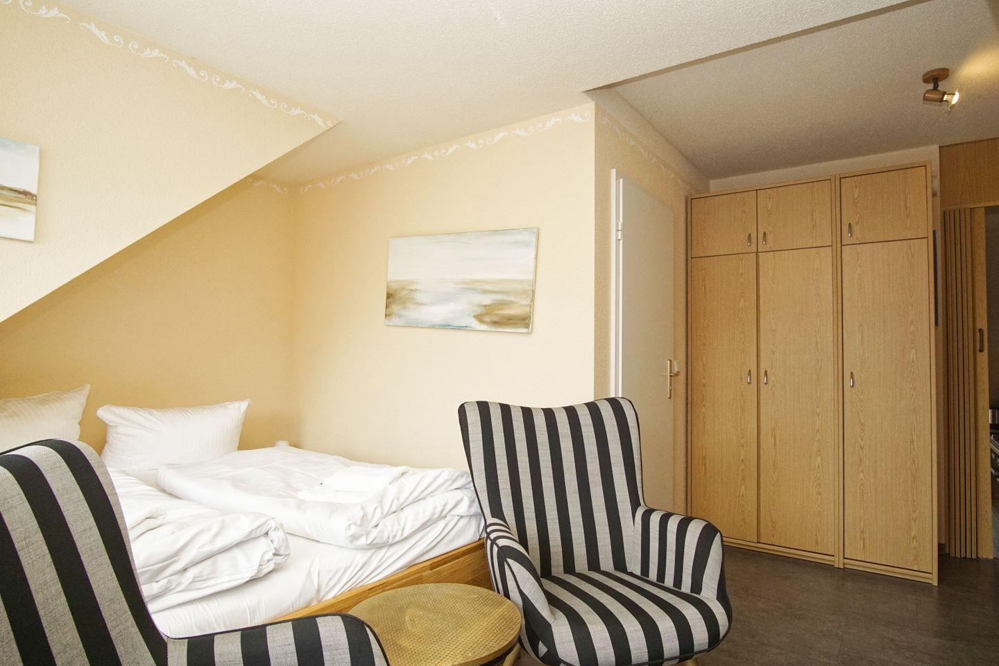 WOHNEN+SCHLAFEN // Wohnraum mit Couch, Kabel-TV, Radio, Zugang zum Balkon & mit bequemem Doppelbett, Kleiderschrank++