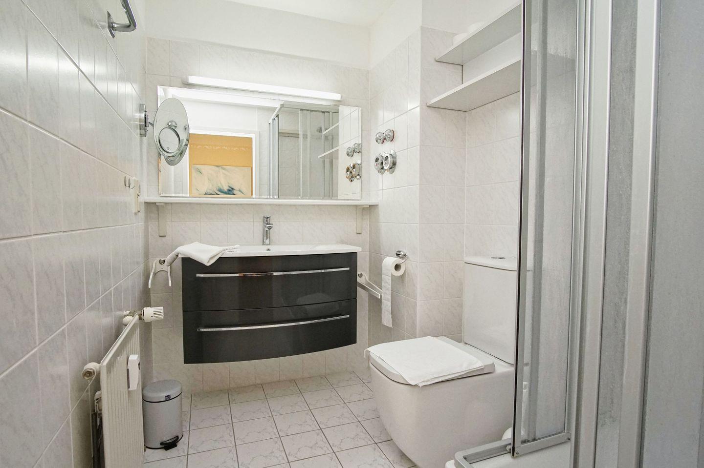 BAD // Badezimmer mit Dusche, Waschtisch, WC und großem Lichtspiegel ++