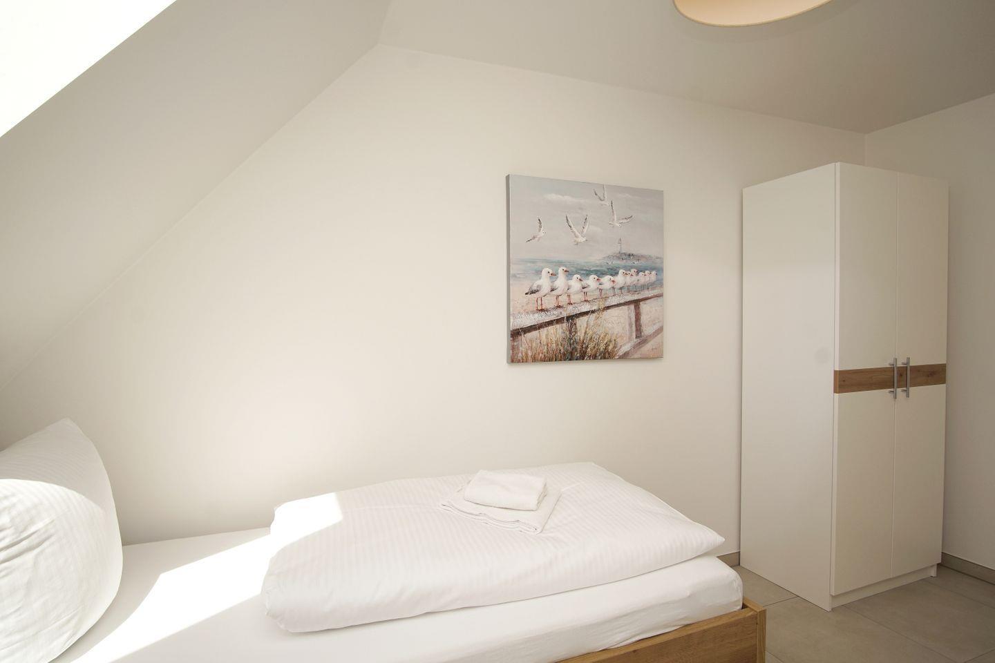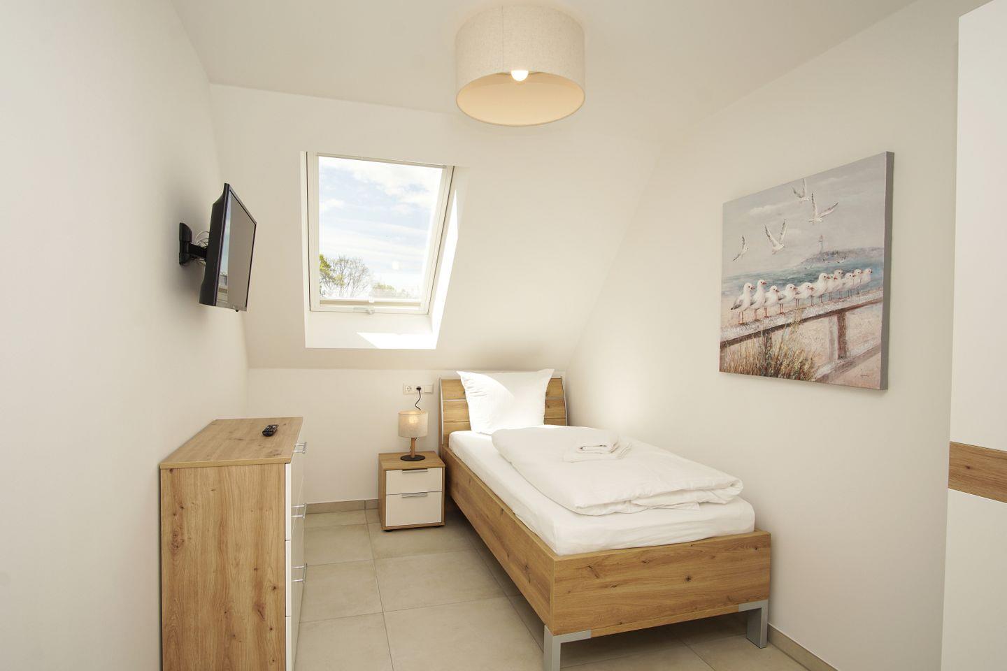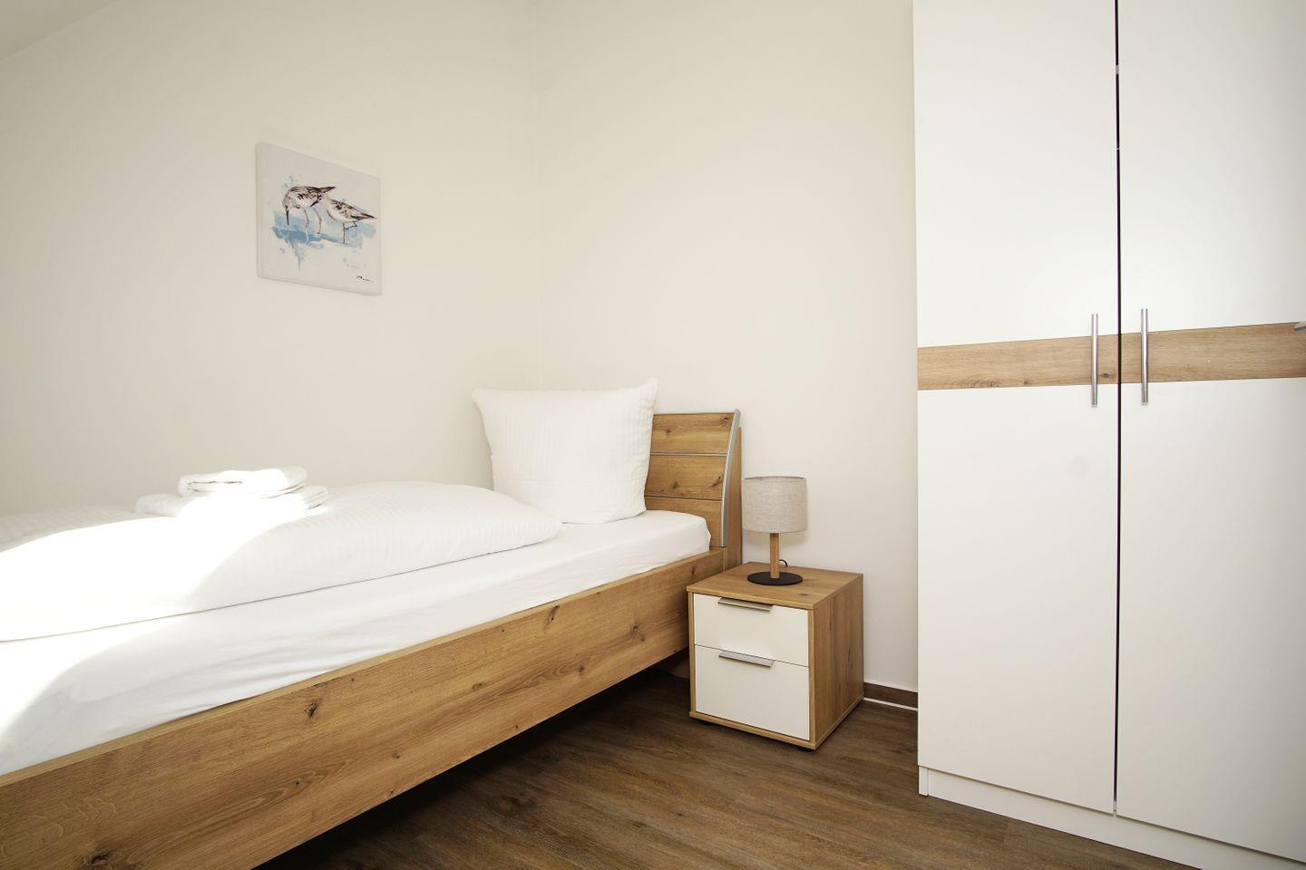 ein Schlafzimmer mit einem Einzelbett ++