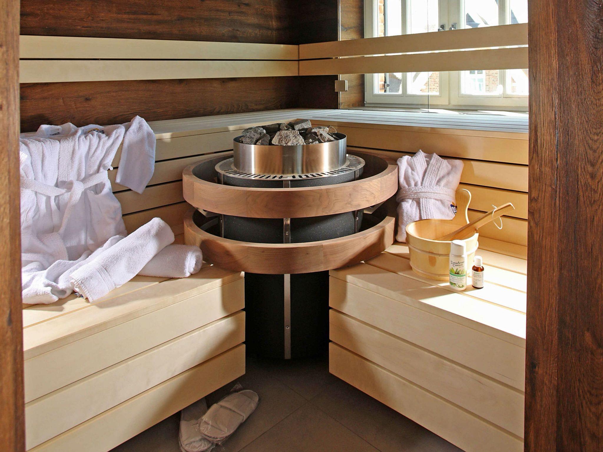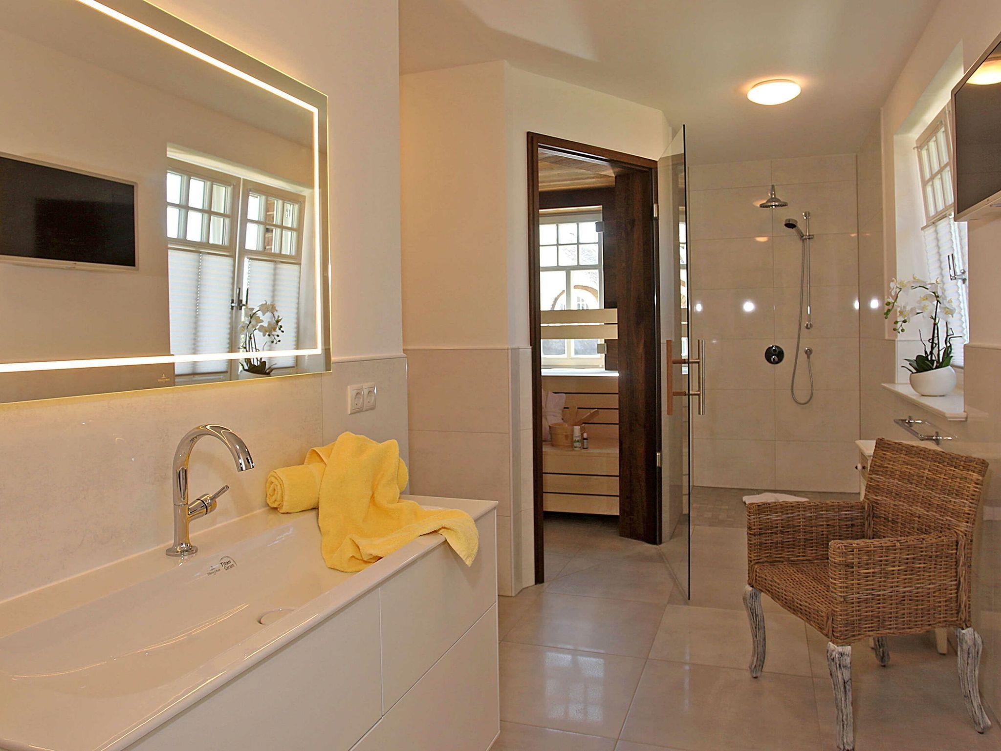 Im Erdgeschoss finden Sie Ihren eigenen Saunabereich im Stil einer Chaletsauna mit ebenerdiger Dusche und WC.