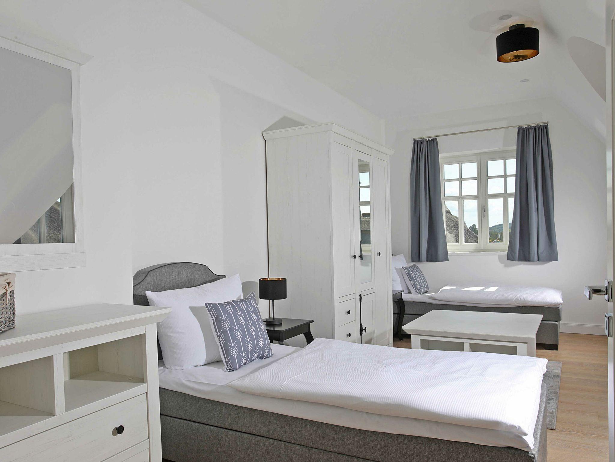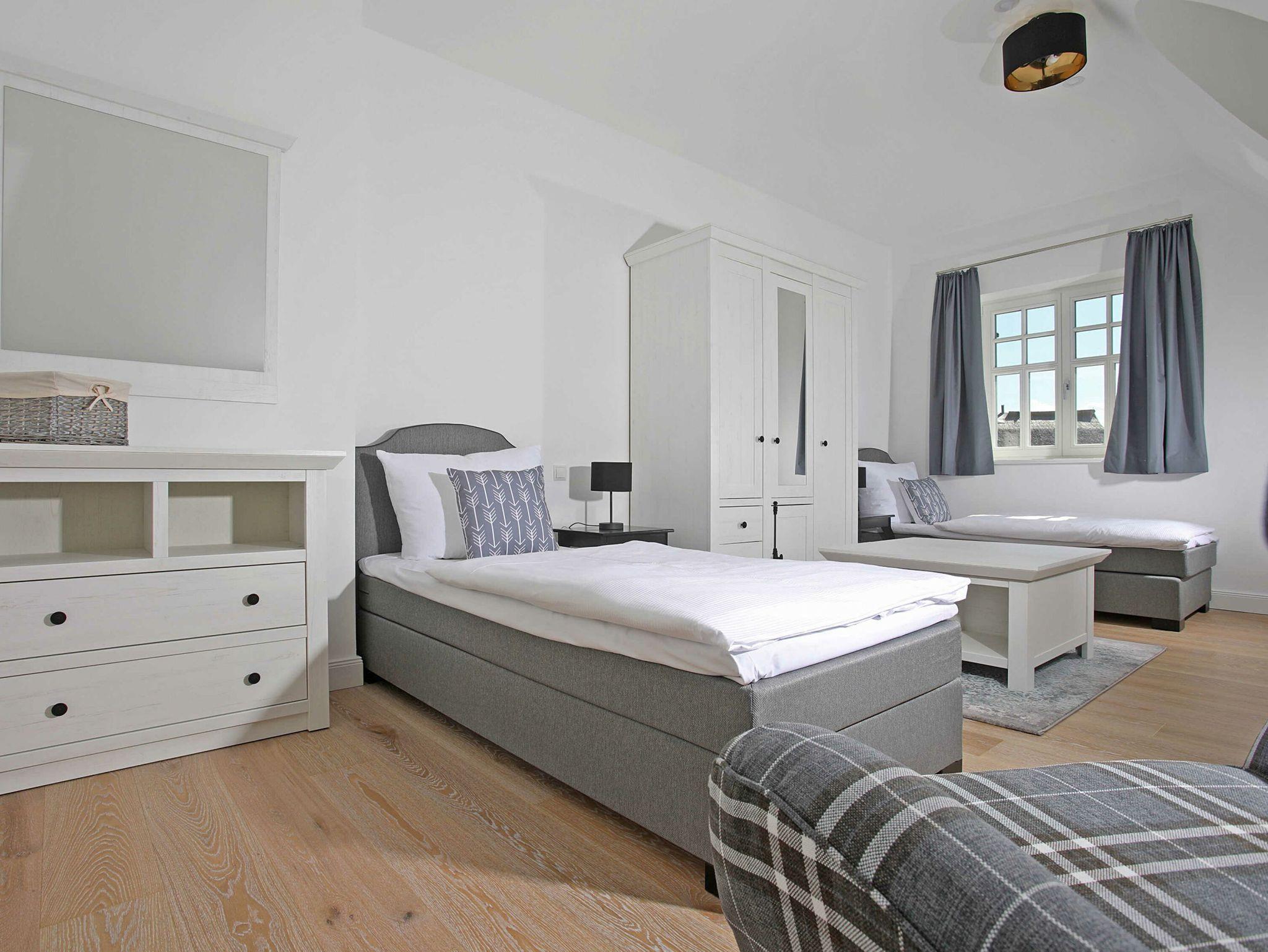 Im dritten Schlafzimmer erwarten Sie zwei Einzelbetten (Box-Spring-Betten)der Größe 90 x 200 cm und auch ein eigener TV. In allen Schlafzimmern besteht die Möglichkeit des Abdunkelns der Fenster.