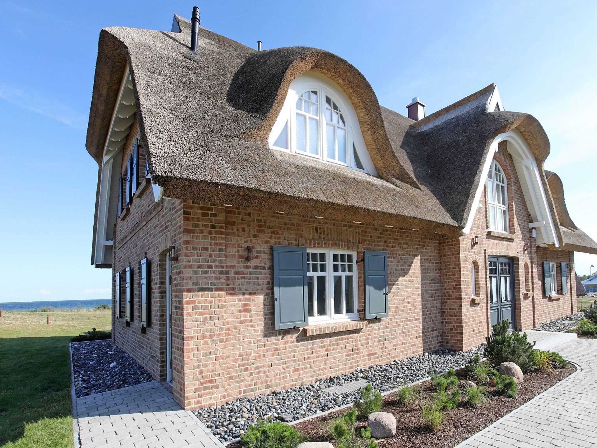 Unser reetgedecktes Traumhaus „Ostsee“ mit Meerblick aus allen Wohnräumen und direktem Strandzugang verfügt über ca. 240 m² Wohnfläche, auf 2 Ebenen verteilt. Es erwarten Sie 3 luxuriöse Schlafzimmer, 3 vollwertige Bäder, eigene Sauna, vollausgestatteter Küchenbereich sowie ein großzügiger Wohnbereich mit Kamin. Auf der riesigen Sonnenterrasse zur Südseite mit Panorama-Meerblick, eigenem Strandkorb und gemütlicher Sitzgruppe lässt es sich wunderbar entspannen.