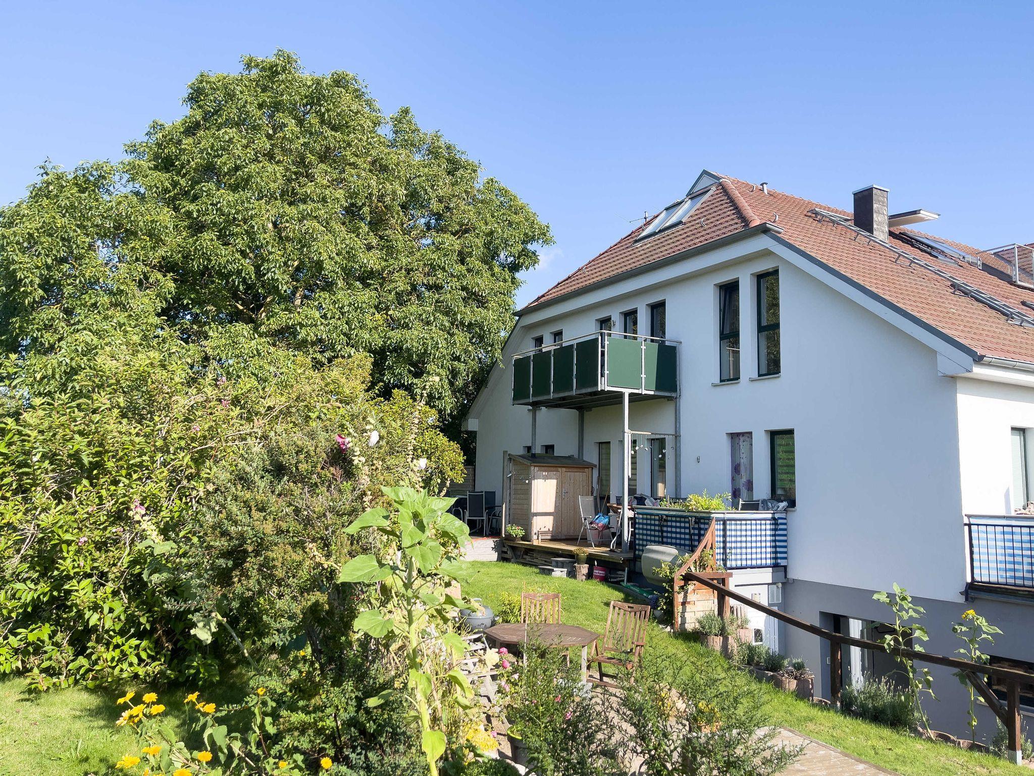 Auf dem Westbalkon mit Gartenmöbeln, können Sie mit Blick ins Grüne entspannen und die atemberaubenden Sonnenuntergänge genießen.