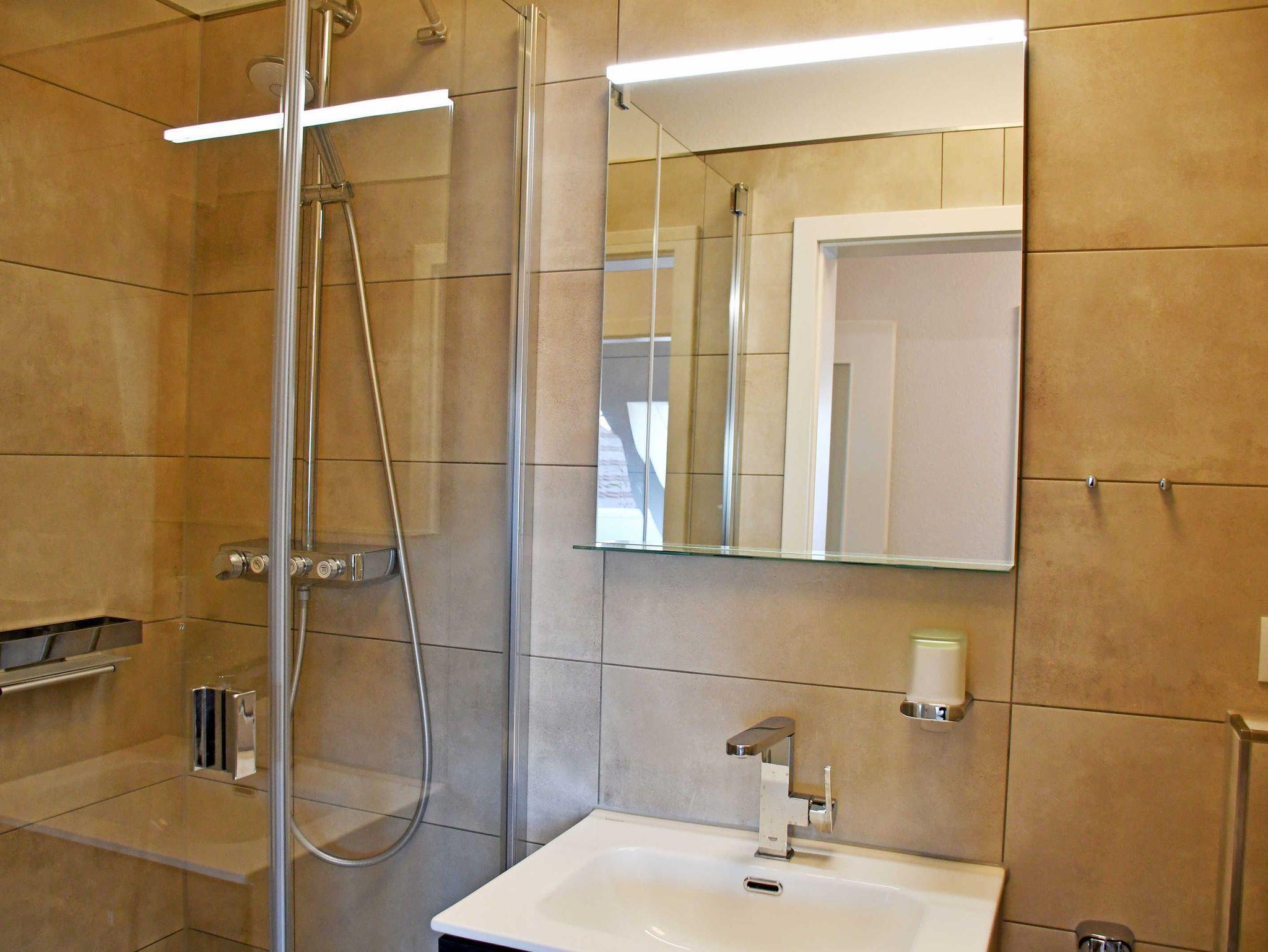 Das weitere hochwertig renovierte Bad mit Regenwalddusche und allem Komfort, erfüllt auch anspruchsvolle Wellnesswünsche.
