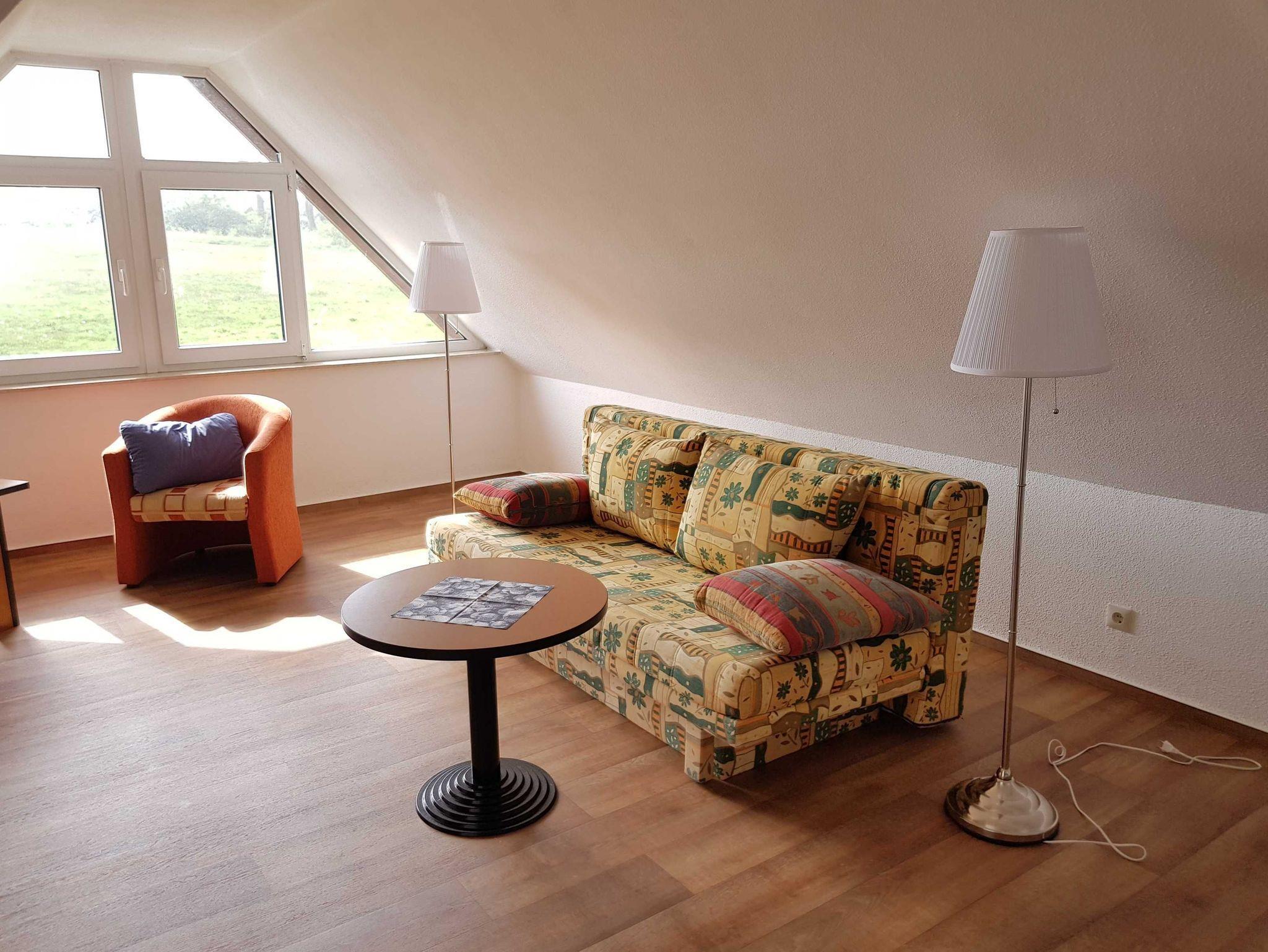 Das Strandhaus Lobbe ist eine reetgedeckte Ferienanlage. Sie liegt idyllisch mit unverbautem Blick auf die schöne Natur der Insel mit ihren typischen landschaftlichen Gegebenheiten. Es sind nur wenige Meter zum Ostseestrand. Das Appartement im 2. Stock ist für 2?4 Personen ideal geeignet. Die Wohnung besteht aus einem großem Wohnzimmer mit einer Ausziehcouch für zwei Personen, einer Essecke und einer Küchenzeile mit diversen Kleingeräten. Weiterhin verfügt die Wohnung über eine Du/ WC und ein Schlafzimmer mit Doppelbett. Fahrräder können im Kellerbereich abgestellt werden.