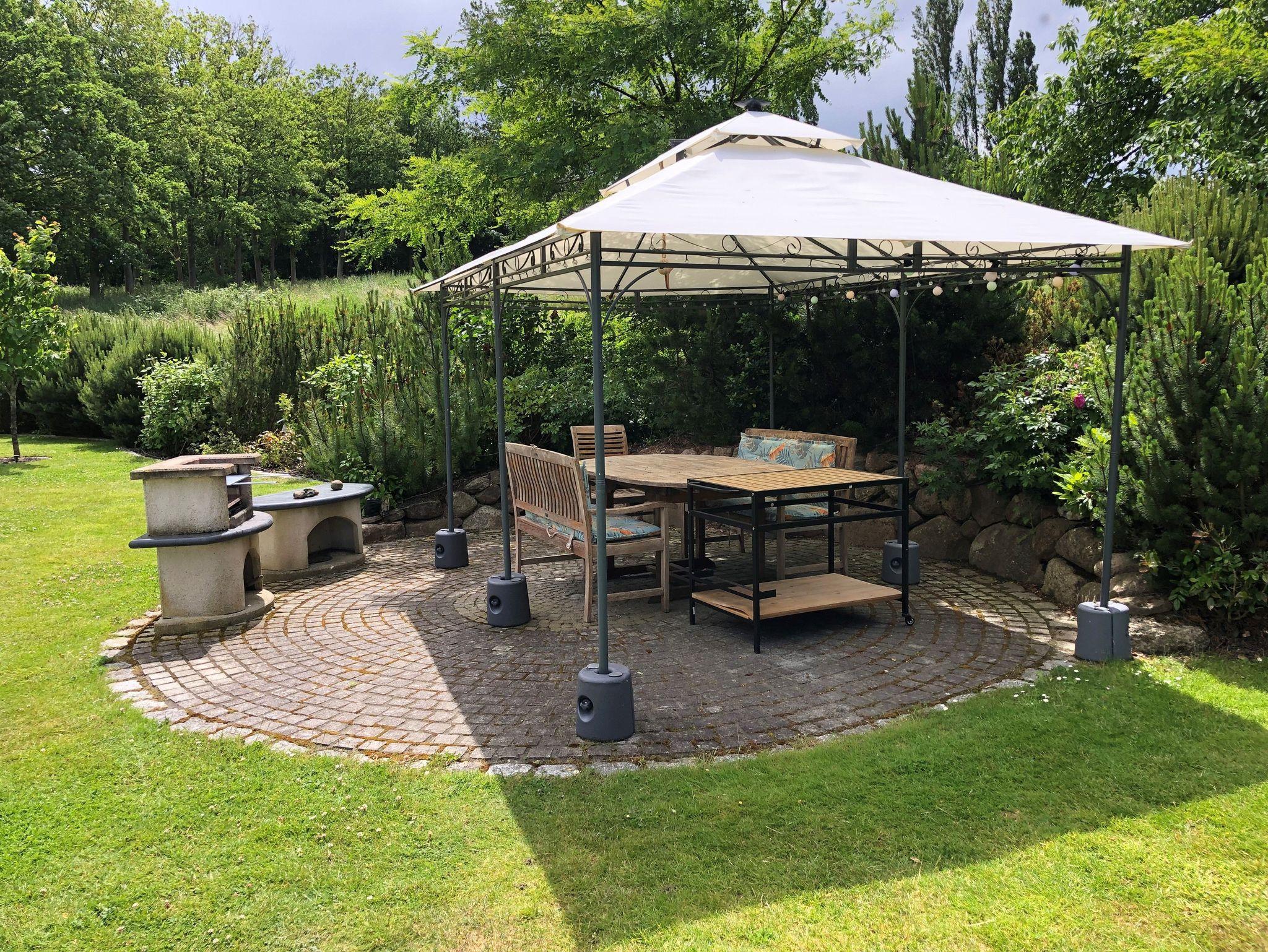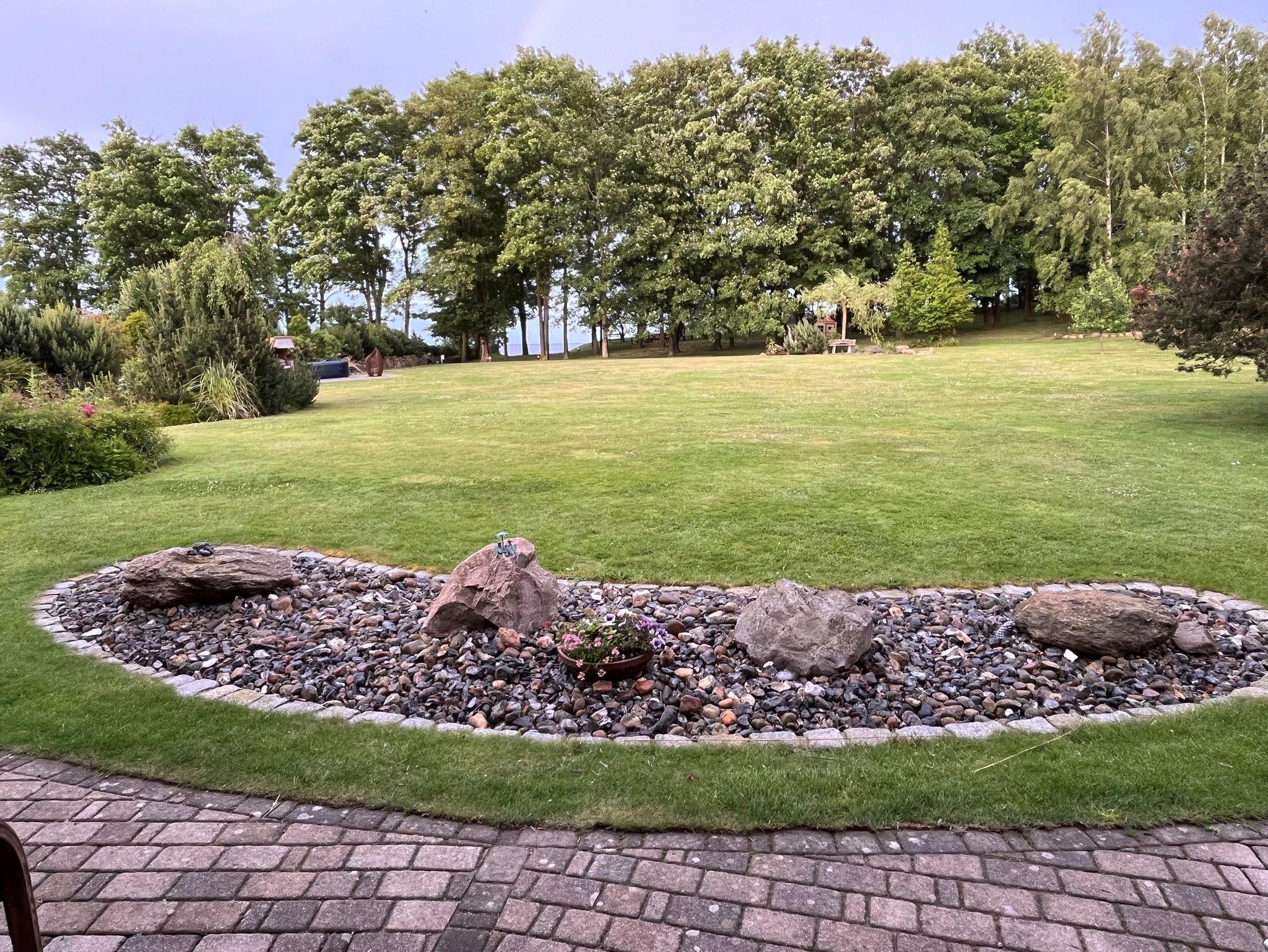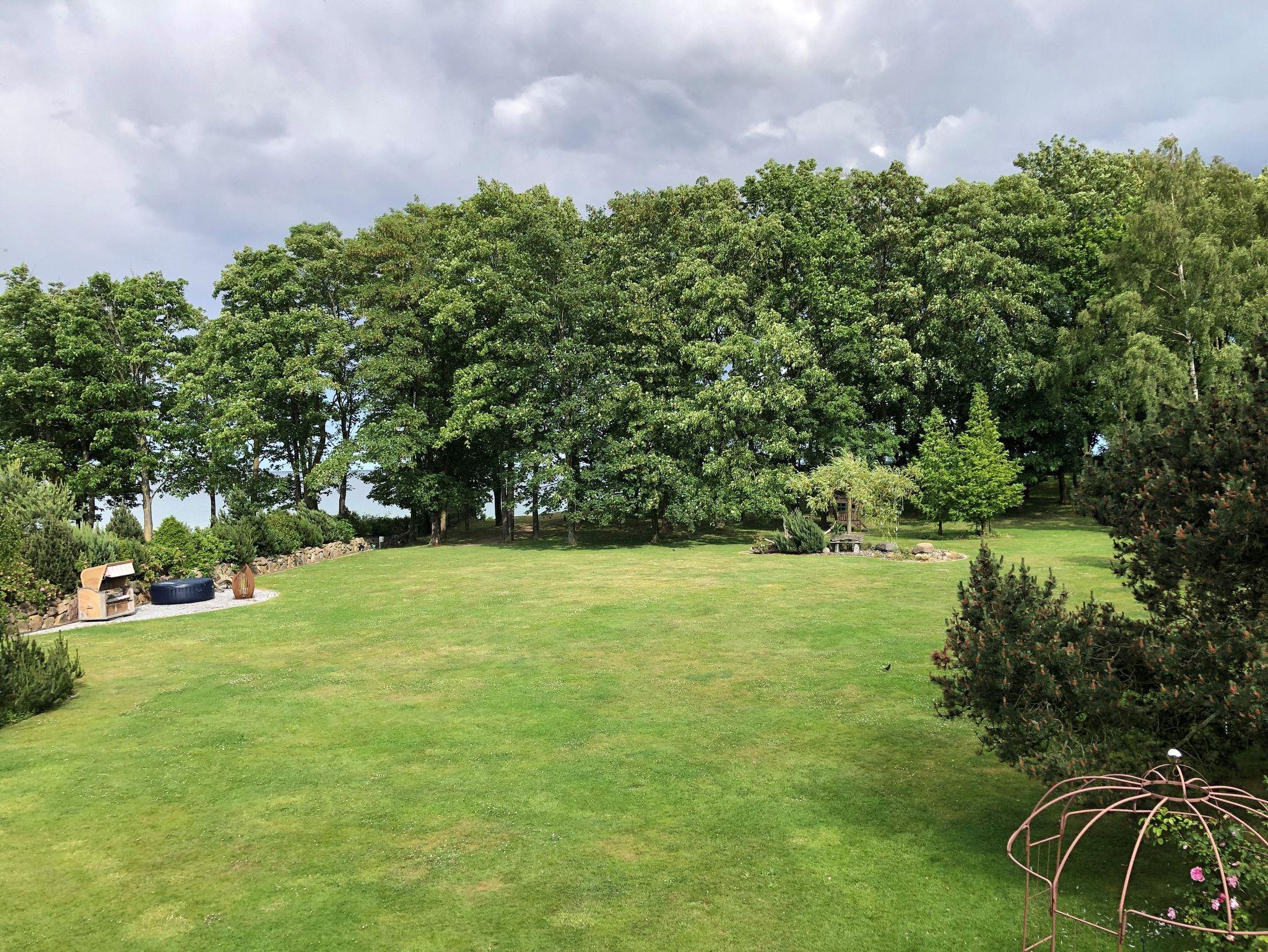 Auf dem riesigen Grundstück haben Sie verschiedene Sitzecken, Strandkorb, Gartenmöbel, Liegen und einen Grillplatz mit weiterer Sitzecke sowie ein Spielhaus im kleinen eigenen Küstenwald.