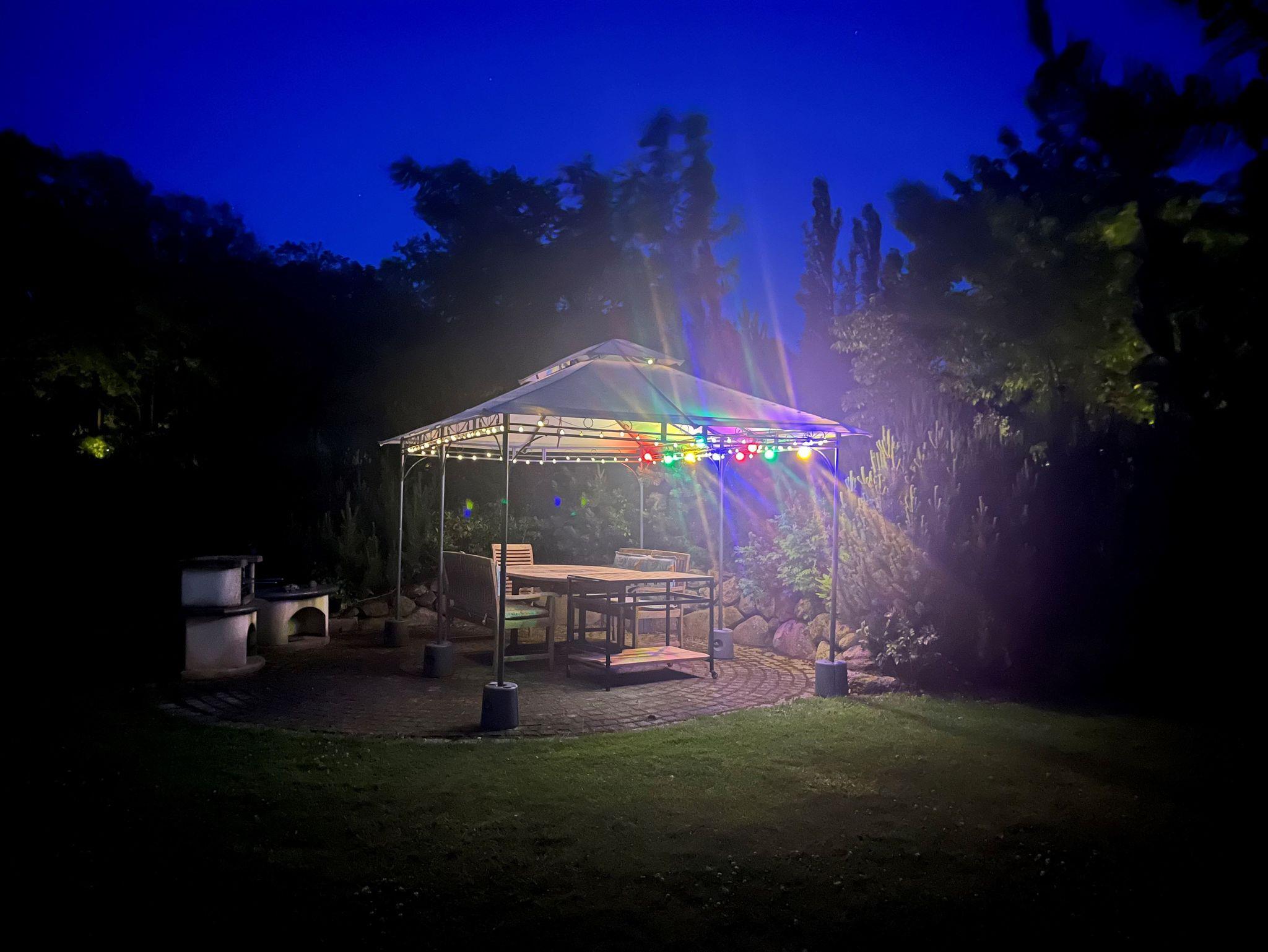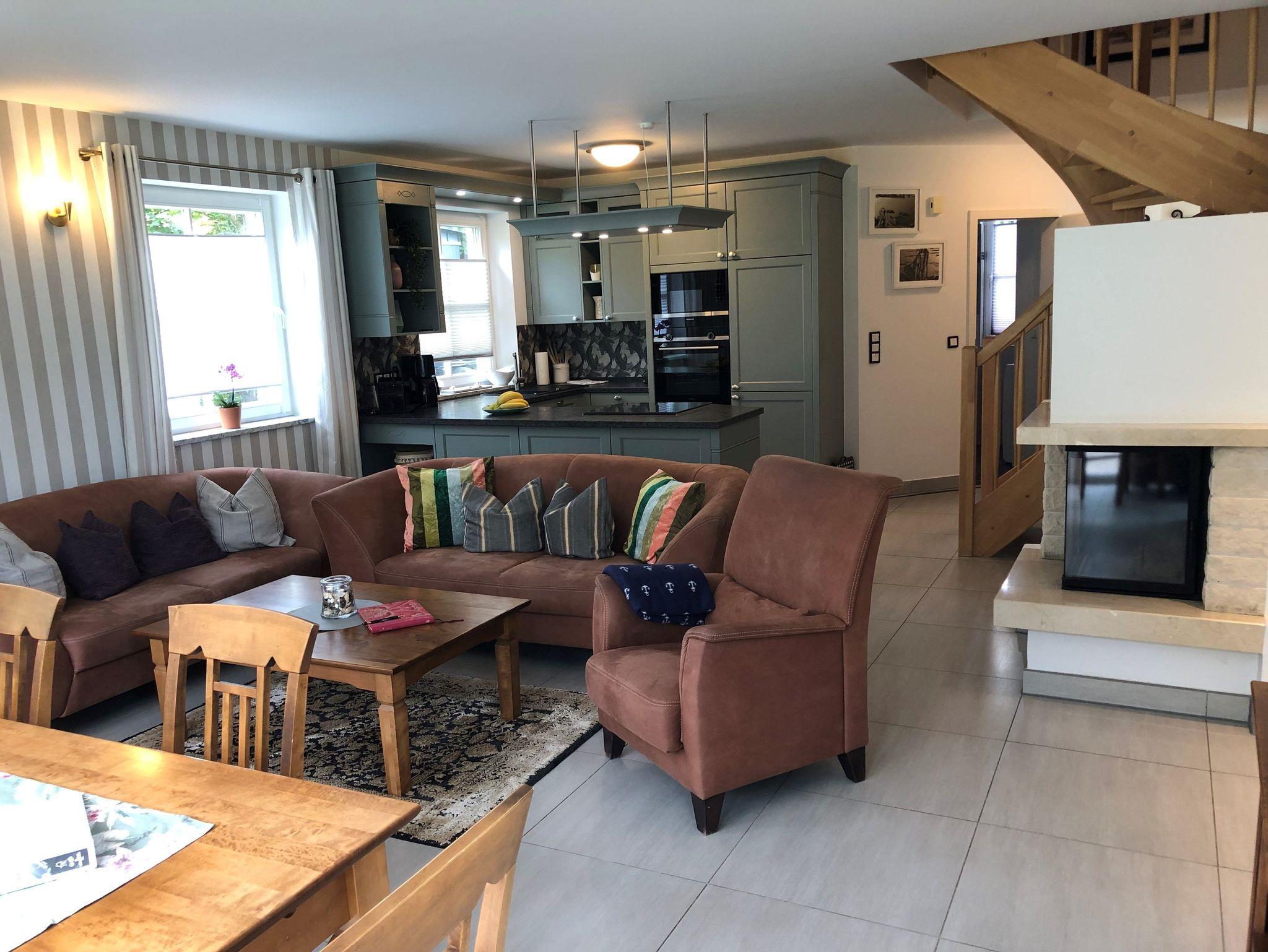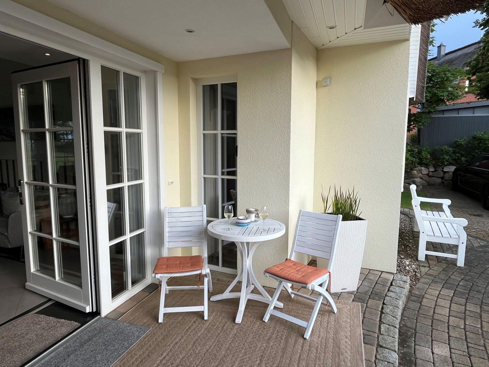 Auf dem riesigen Grundstück haben Sie verschiedene Sitzecken, Strandkorb, Gartenmöbel, Liegen und einen Grillplatz mit weiterer Sitzecke sowie ein Spielhaus im kleinen eigenen Küstenwald.