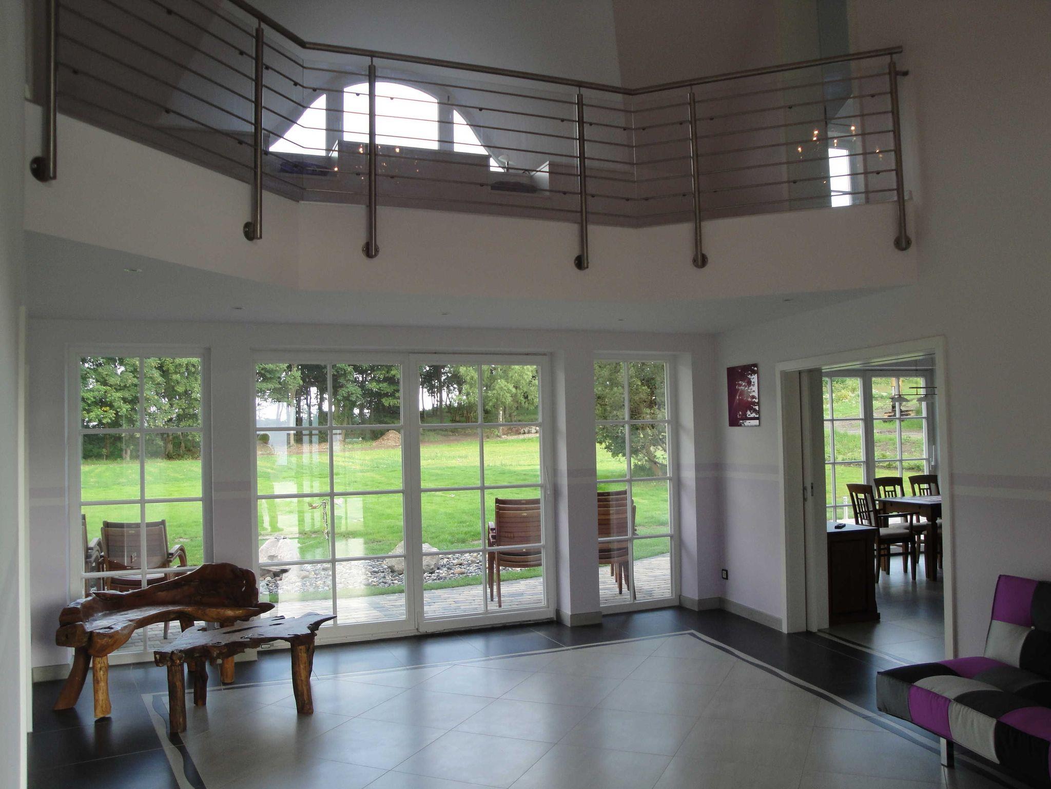 Im Erdgeschoss finden Sie die große Lobby mit Eingangsbereich und Galerie, das Wohnzimmer mit Kamin, Gäste Bad mit Dusche, WC, Sauna, Waschmaschine, Küche, und der Essbereich im Wintergarten.