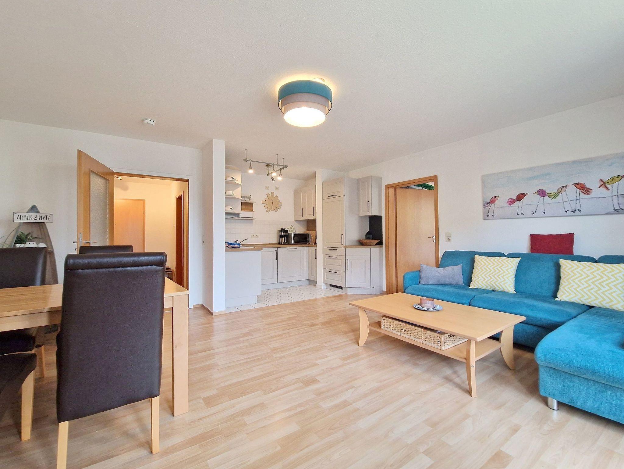 Der Wohnbereich ist mit einer gemütlichen Schlafcouch, sowie einem Flachbild TV eingerichtet. Die offene Küche mit Essbereich ist ausgestattet mit einem 4-Felder Ceranherd, Minibackofen, Kühlschrank mit Gefrierfach, Geschirrspüler, Kaffeemaschine, Toaster, Wasserkocher und reichlich Küchenutensilien. Die Wohnung bietet 1 Schlafzimmer mit gemütlichem Doppelbett und einer Couch. Vom Schlafzimmer gelangen Sie auf die Terrasse.