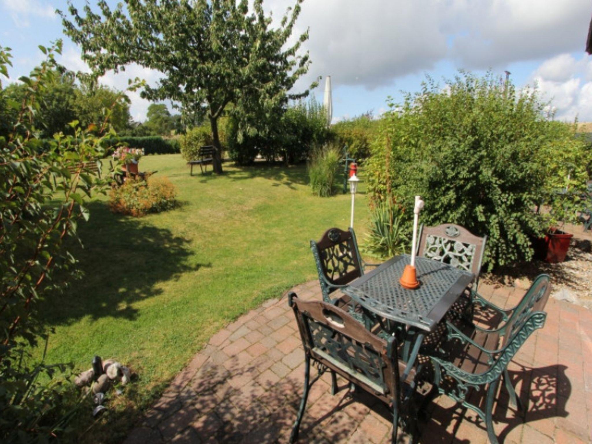Das gesamte großflächige Grundstück steht dem Urlauber zur Verfügung und wurde von uns bis ins Detail liebevoll gestaltet. Auch für Familien mit Kindern gibt es viele Angebote: Piratenboot, Wippe, Tischtennisplatte, Fußball und vieles mehr. Die Appartements im Untergeschoß verfügen über eine eigene Terrasse mit Tisch und Stühlen, zu der man durch die Verandatür gelangt. Für die Gäste aus dem oberen Stockwerk sind ausreichend gemütliche Sitzecken im Garten eingerichtet. Ist man einmal strandmüde, stehen hier auf dem Rasen eigene Strandkörbe für das Sonnenbad am Landhus zur Verfügung. Hier können Sie in einer ruhigen Ecke des Grundstücks, mit Blick auf den Bodden und die Hügelkette des Großen Zicker, gut entspannen.