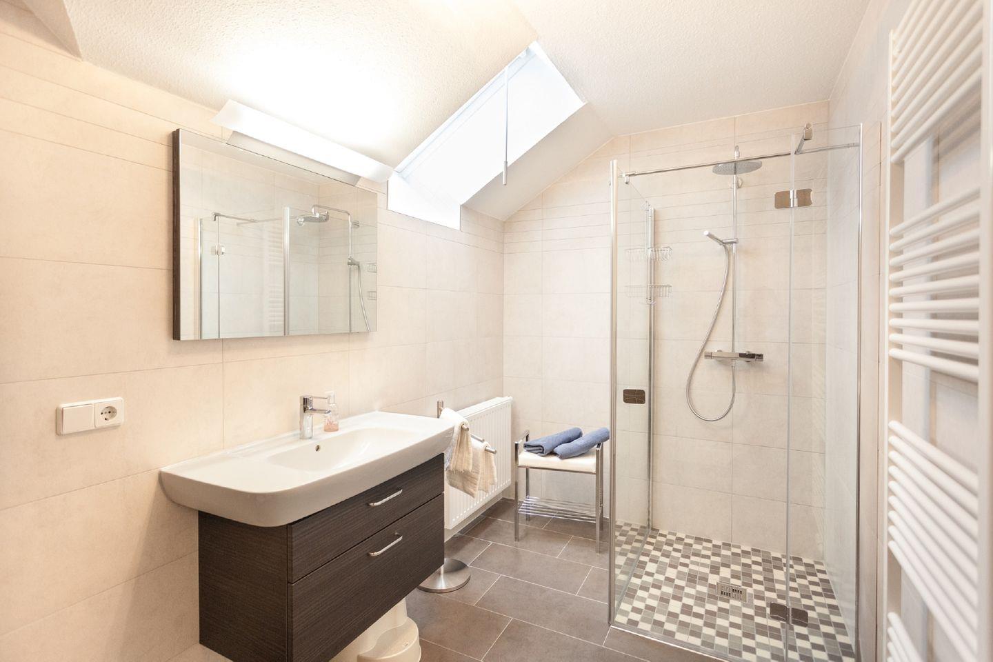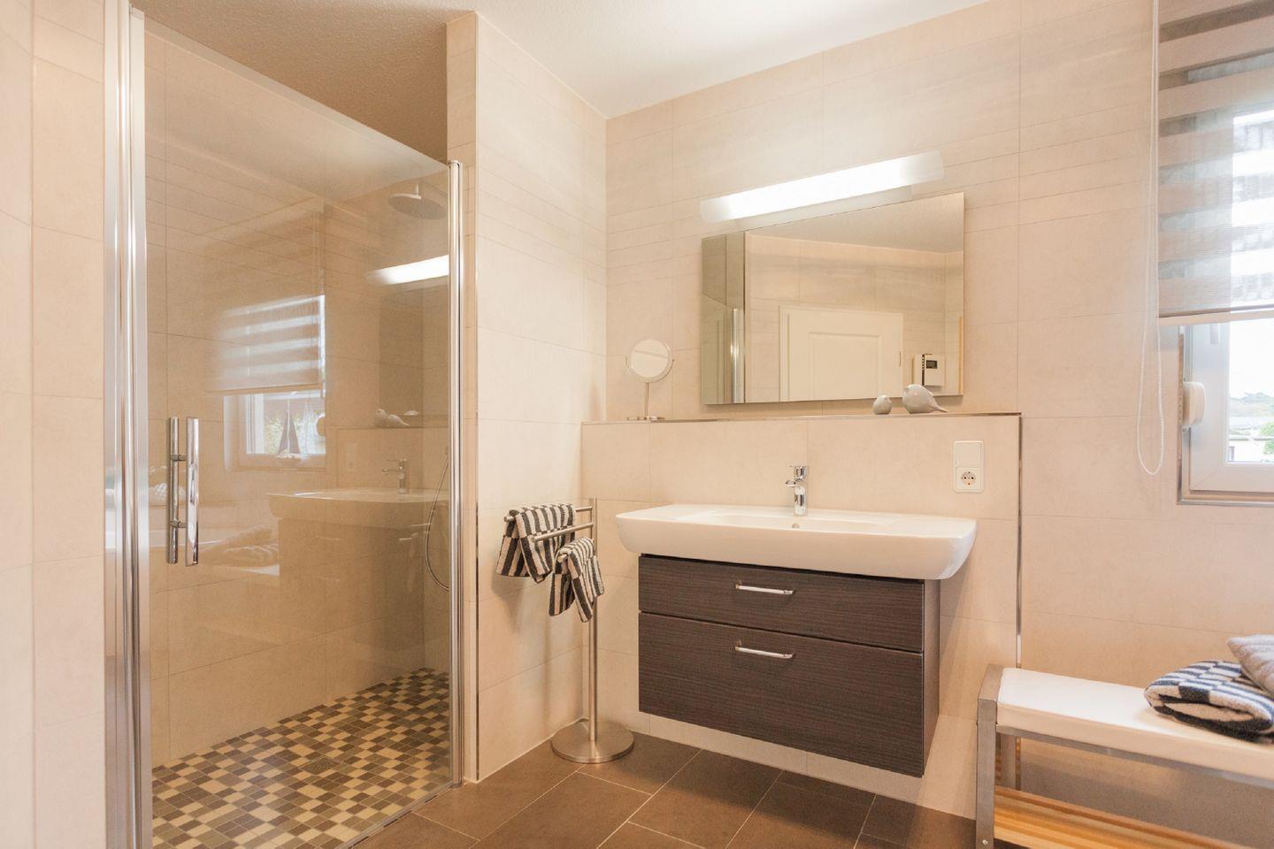 BAD // 2 Tageslicht-Badezimmer mit Dusche, WC und Waschtisch, eins davon zusätzlich mit Sauna und Badewanne, 2 Tageslicht-Badezimmer im OG mit Dusche, WC und Waschtisch ++