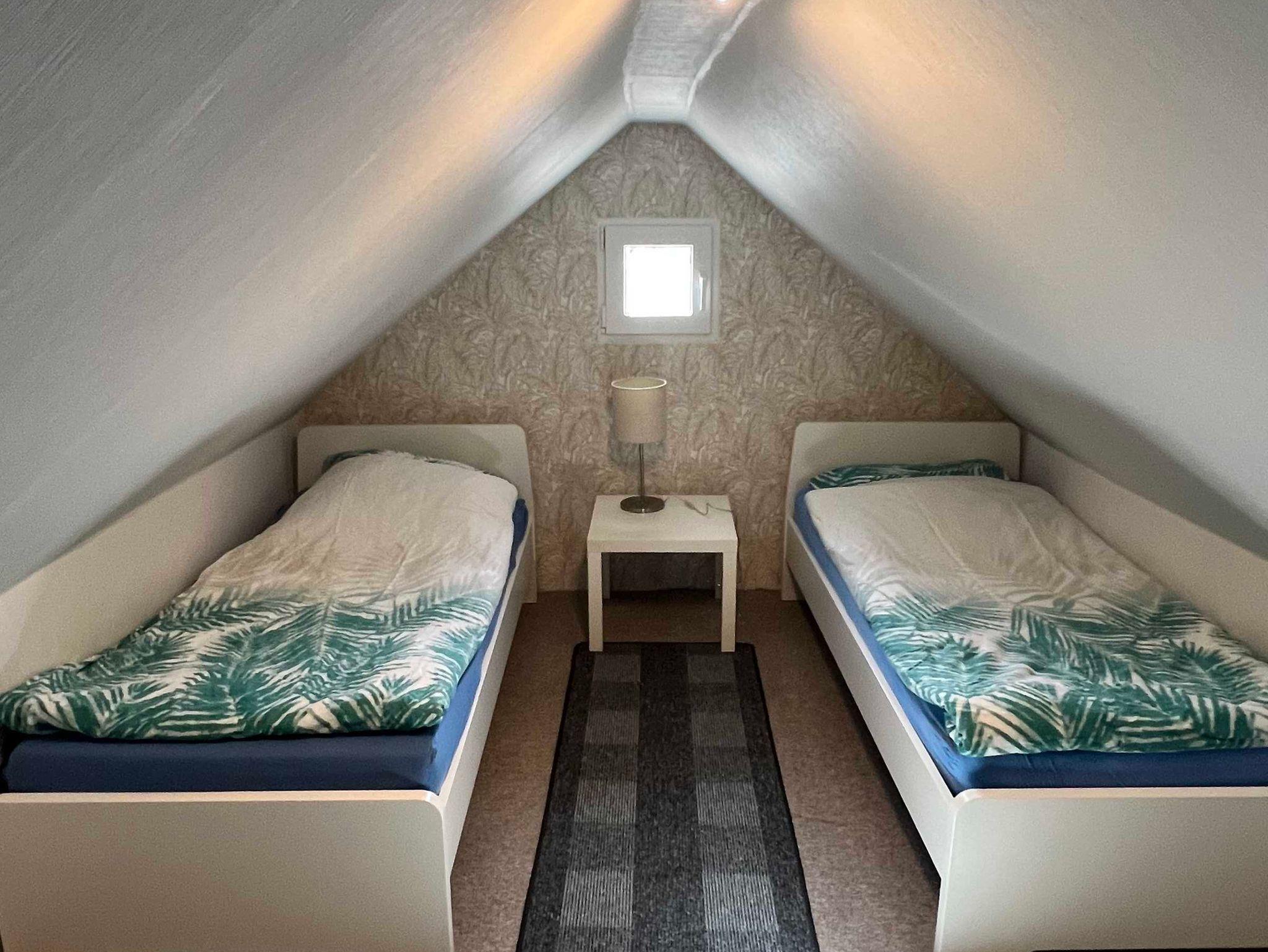 Im Schlafbereich steht ein Doppelbett (1,80 m) und im Turmzimmer befinden sich zwei Einzelbetten.