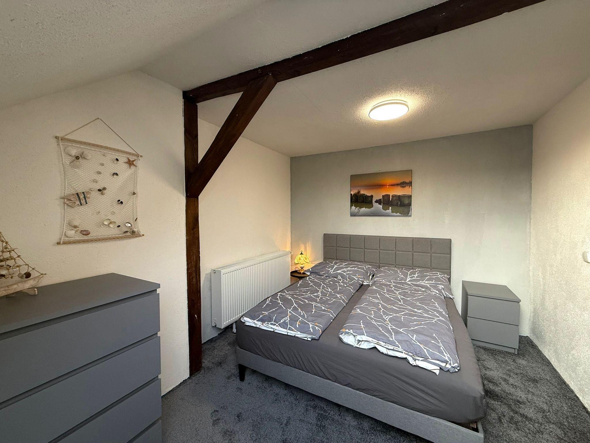 Im Schlafbereich steht ein Doppelbett (1,60 m) und im Turmzimmer befinden sich zwei Einzelbetten.