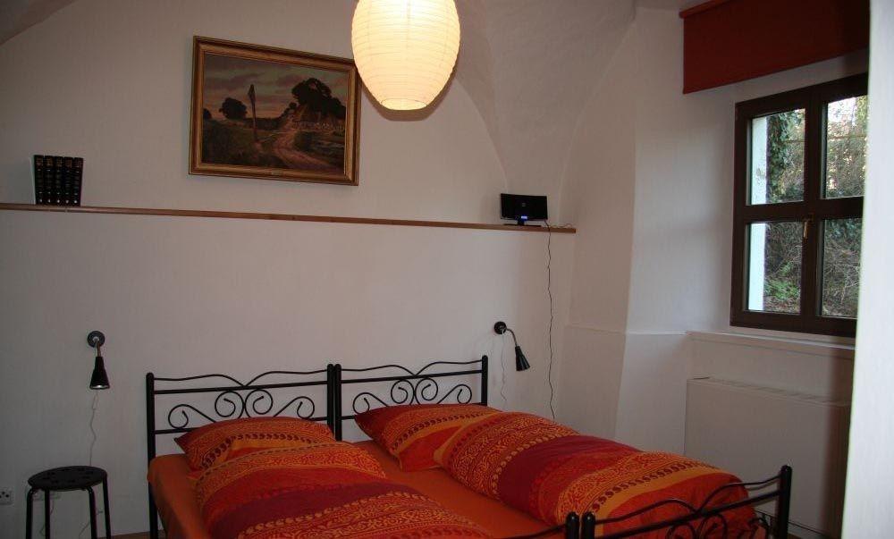 Das Pfarrhaus stammt aus dem Jahr 1581 und bietet einige beeindruckende, zeitgenössische Details, welche die Ferienwohnung besonders machen. Hierzu zählen nicht nur die dicken Außenmauern, welche auch im Hochsommer für ein angenehm kühles Wohnklima sorgen, sondern auch die hallenartigen Räume mit beeindruckender Deckenhöhe. Das Schlafzimmer verfügt zudem über eine Kreuzgewölbedecke, welche sich so sicher in keiner zweiten Ferienwohnung findet. Historische Türen, mit Rundbögen gefasste Fenster, das Sandsteinportal am Eingang und die Malereien an Decke und Wänden machen die einzigartige Atmosphäre dieser Ferienwohnung perfekt.