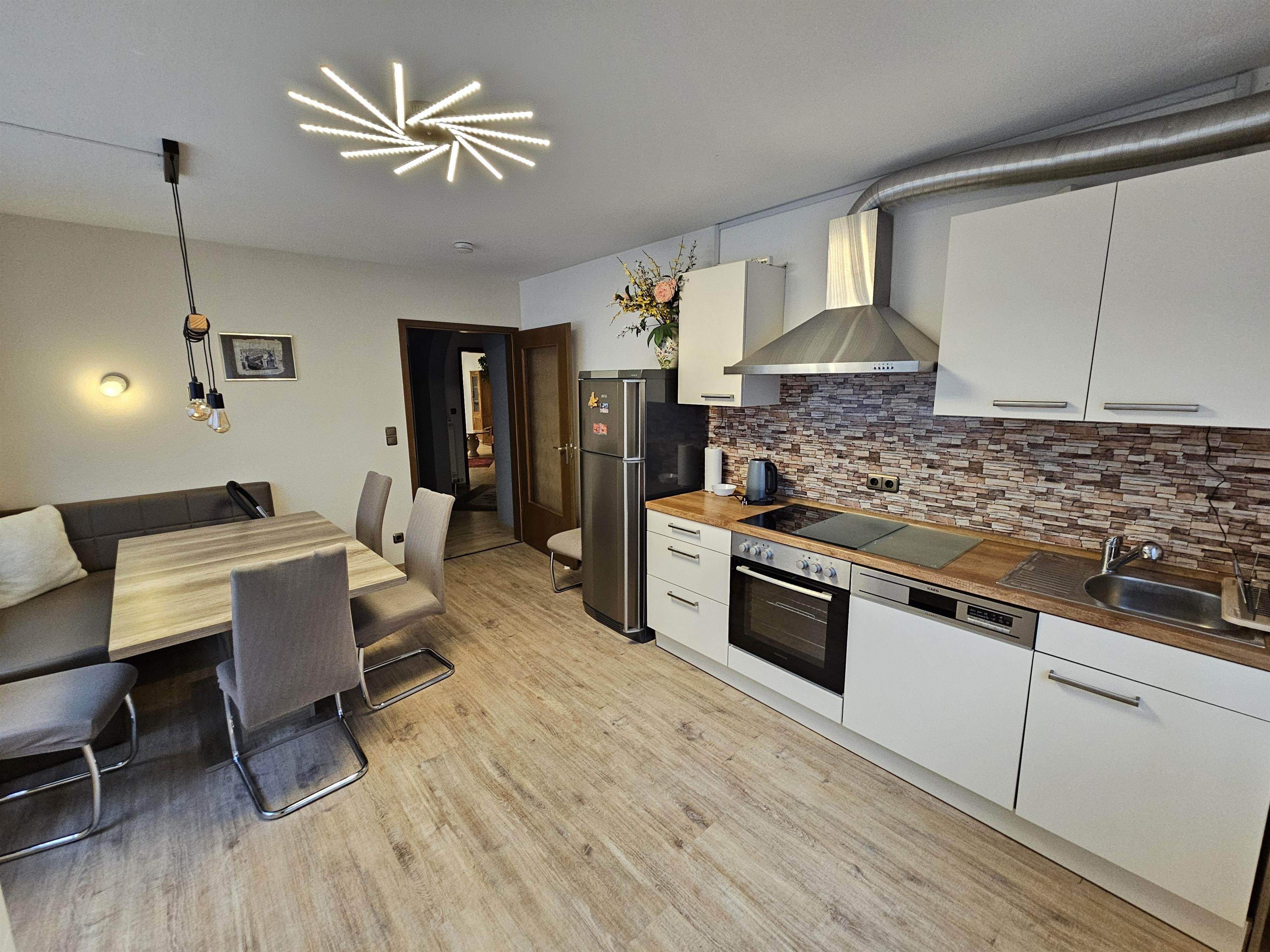 Bad mit Außenfenster, Wanne mit Duschwand, Wohnküche mit Eckbank und Esstisch, Waschmaschine im Haus auf Anfrage. Buga-Park / Riemer See in 1km Entfernung. Einkaufsmöglichkeiten und Restaurants in unmittelbarer Nähe. Kostenloses Parken auf öffentlichen Straßen in der Regel möglich.