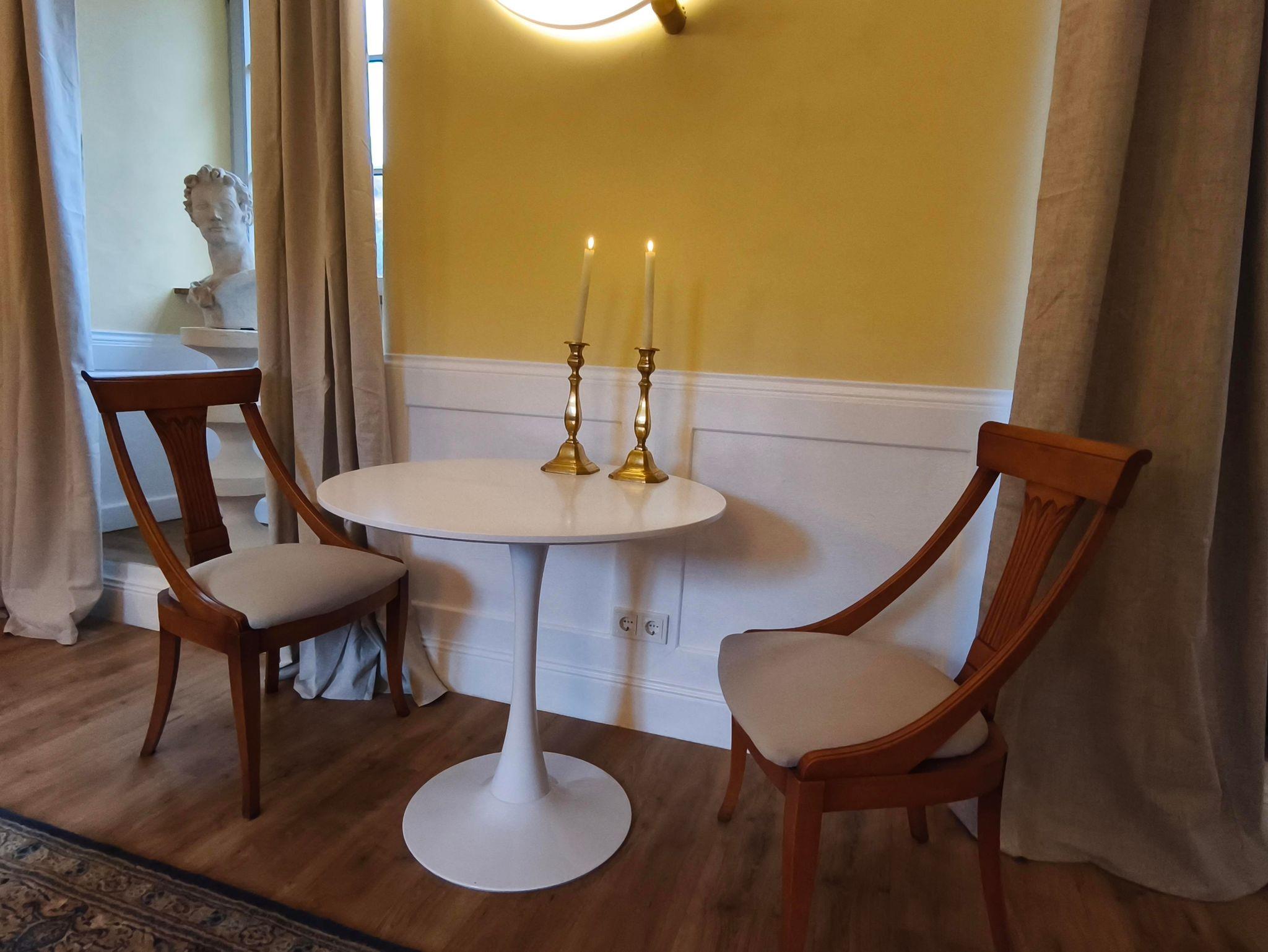 Getreu ihrem Namen ist die Marie-Therese-Suite großzügig geschnitten und bietet ein luftiges und anmutiges Wohnerlebnis. Lichtdurchflutete Räume laden zum Entspannen ein, sei es im eleganten Sitzbereich oder beim Genießen der ruhigen Atmosphäre, die durch edle Materialien, sorgfältig ausgewählte Möbel und liebevolle Details geschaffen wird.
