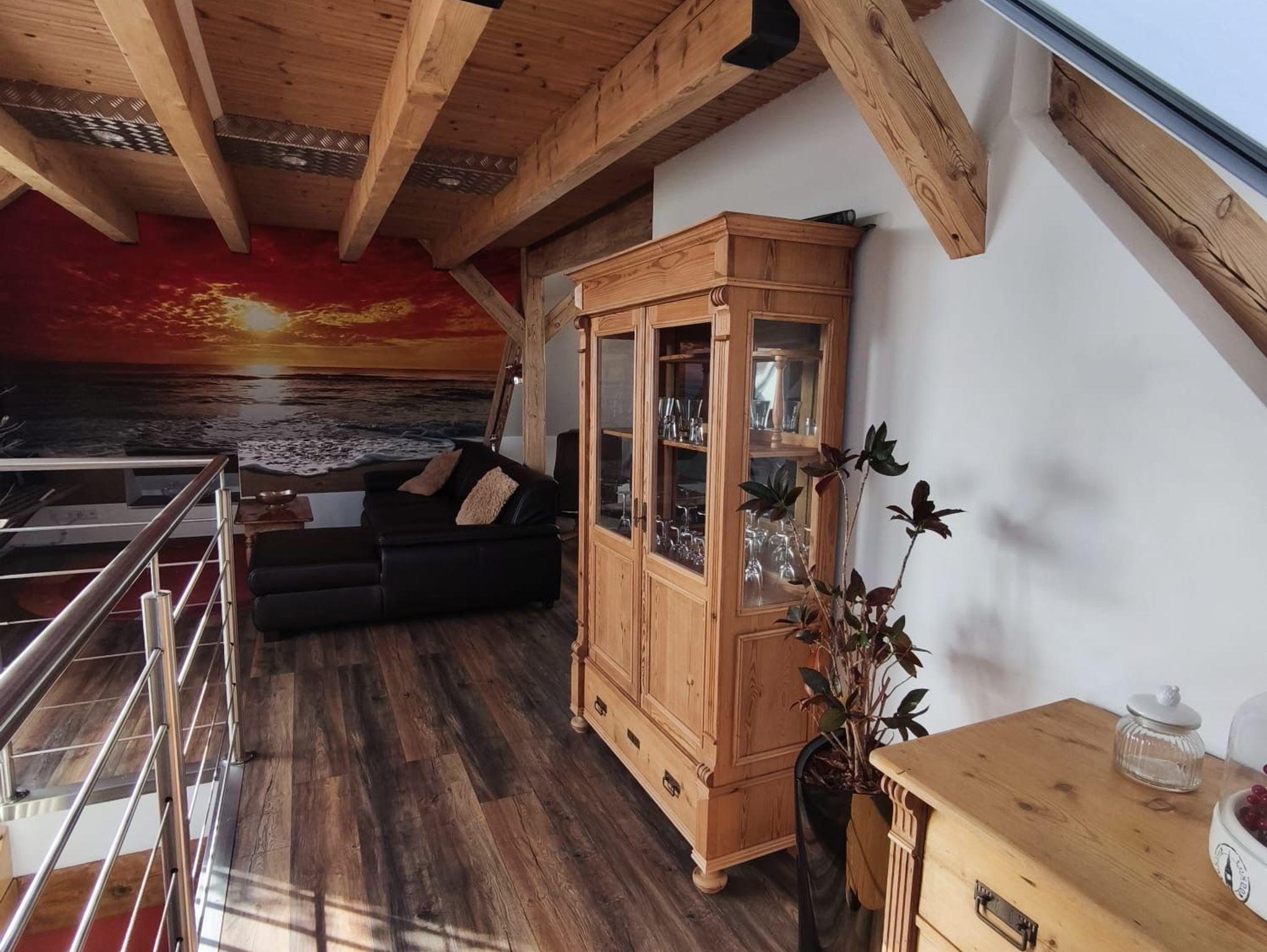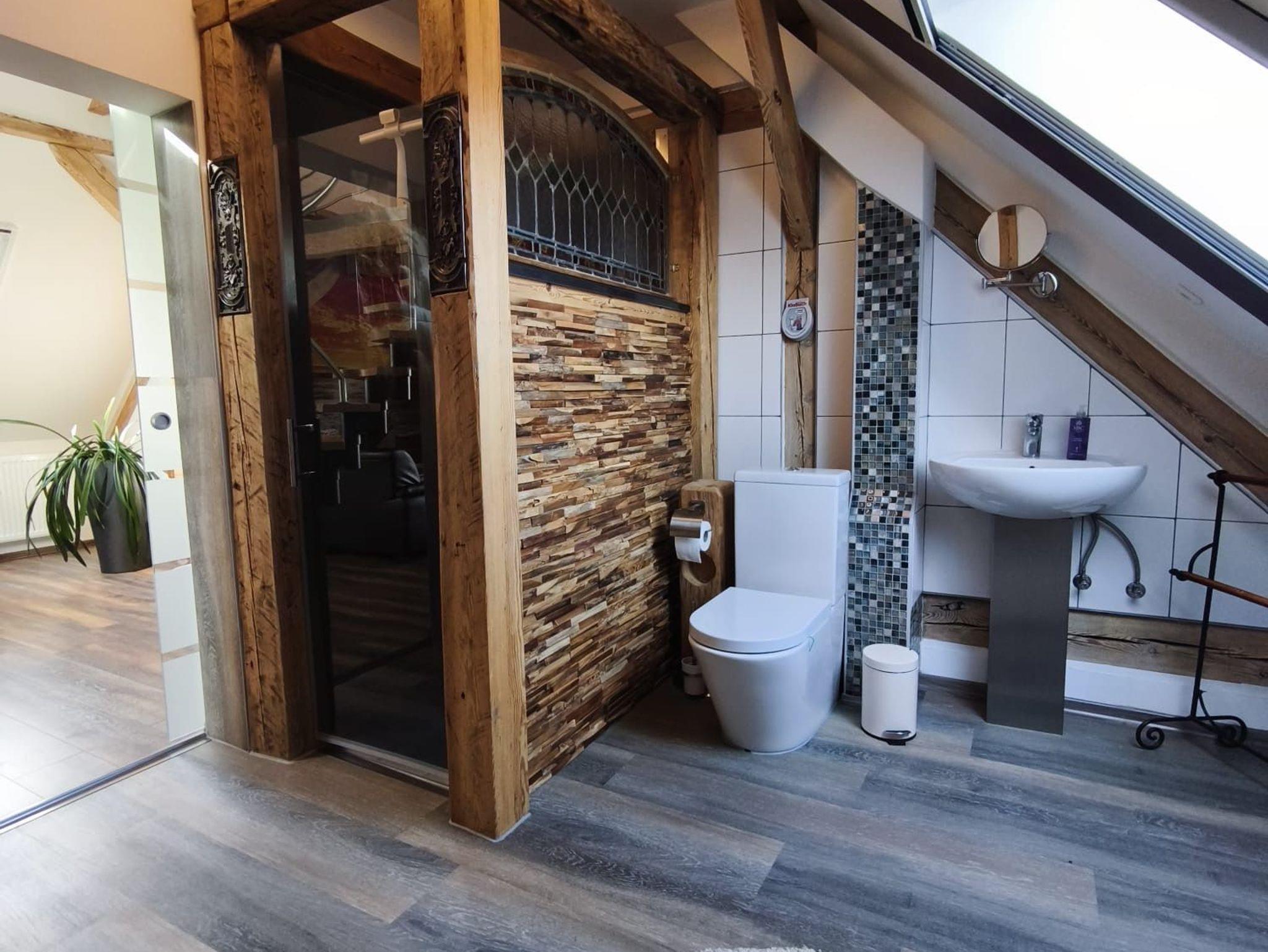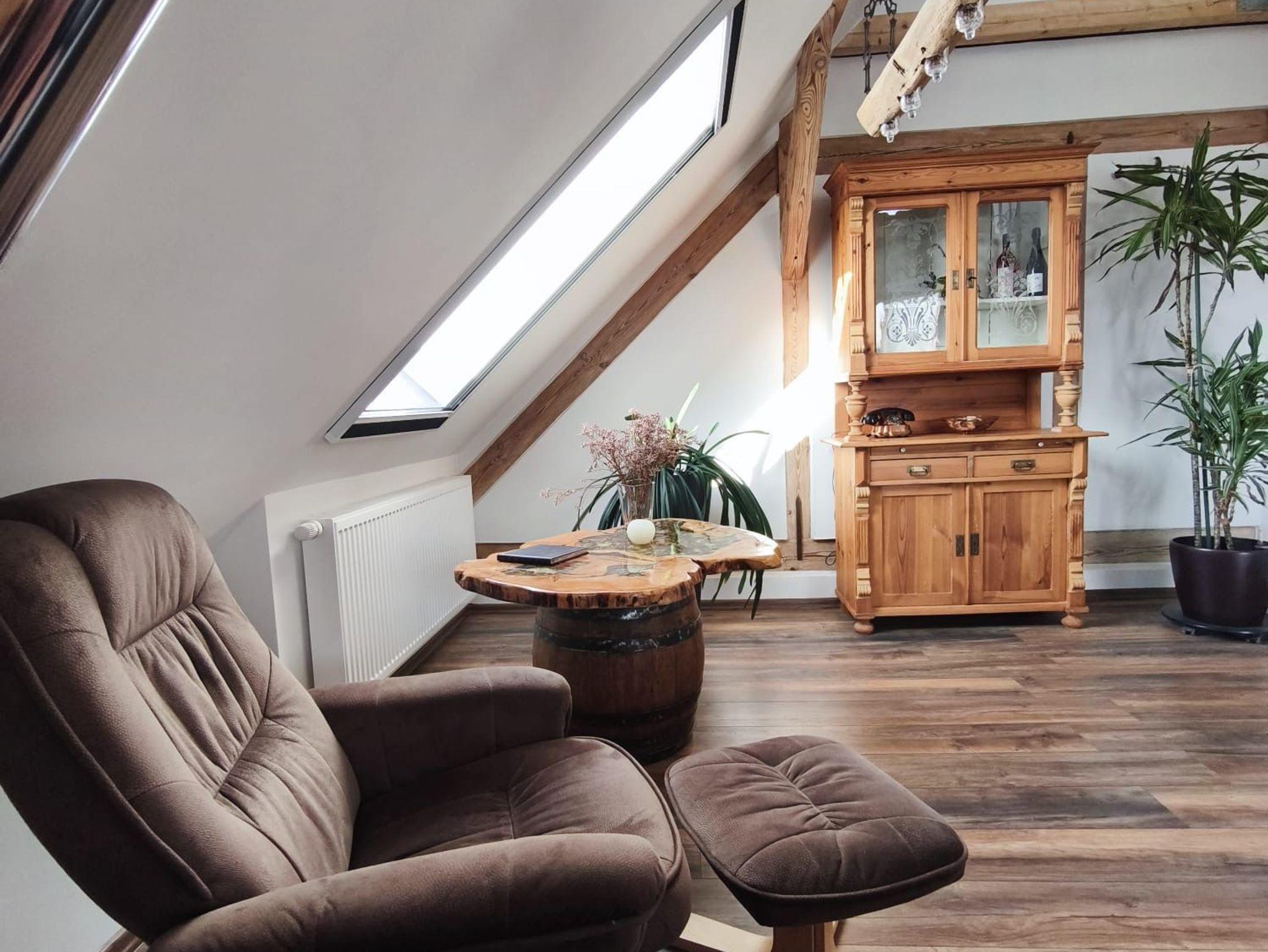 Das Duschbad und der Wohnbereich befinden sich in der ersten Etage.