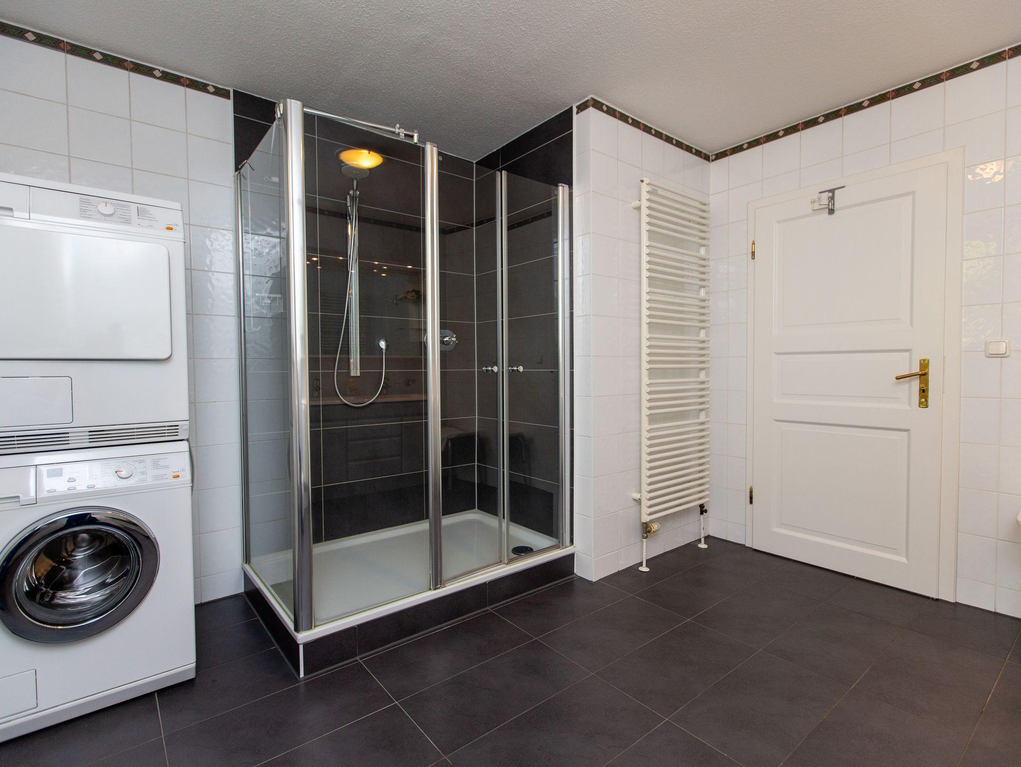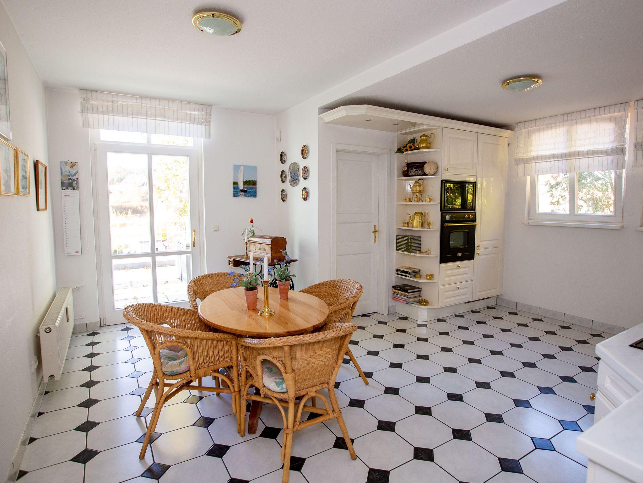 Eine großzügige Küche, das Wohnzimmer mit Balkon und offenem Kamin, Diele mit Essbereich, 2. Wohn-/Schlafzimmer, Bad mit Dusche, Waschmaschine und Trockner und das separate Gäste-WC bieten jeglichen Komfort.