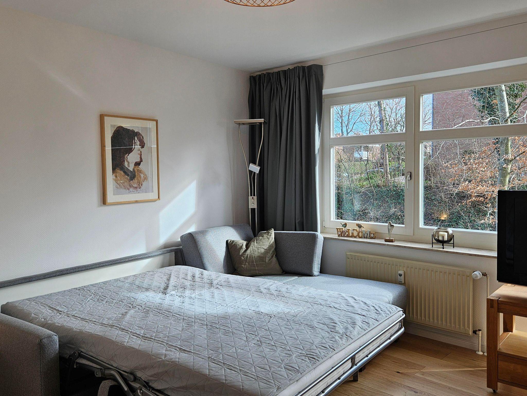 Die Ferienwohnung Ekengrund ist ca. 45 m² groß und verfügt über ein Wohnzimmer mit einer Schlafcouch und einer offenen Küche, ein separates Schlafzimmer mit einem Doppelbett (durchgehende Matratze), ein Badezimmer mit Dusche und WC sowie einen Balkon. In der 2024 neu eingebauten Küche stehen Ihnen neben Kaffeemaschine, Wasserkocher, Toaster und Mikrowelle auch ein Backofen und ein Geschirrspüler zur Verfügung.