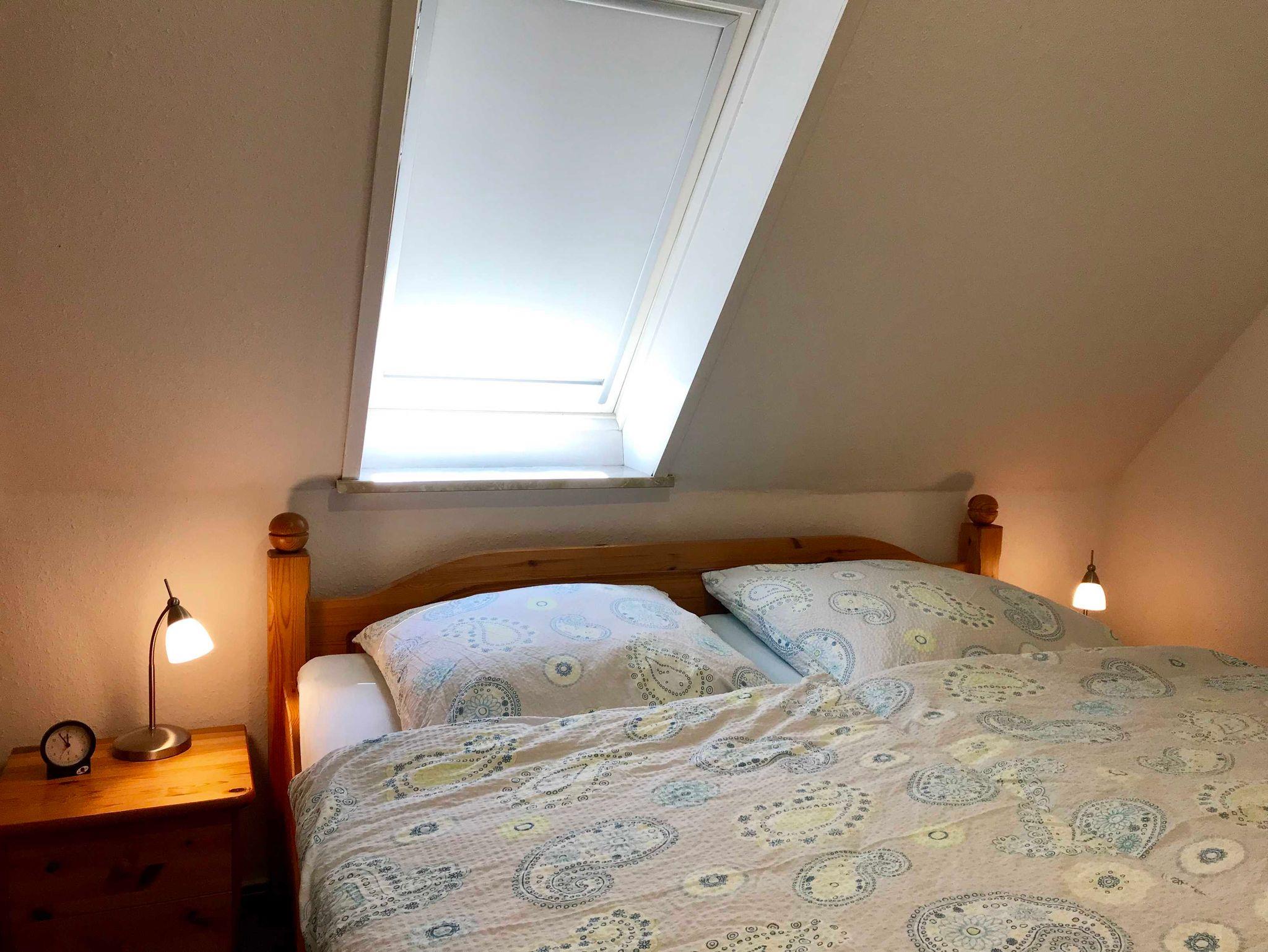 Die Ferienwohnungin einer ruhigen Sackgasse bietet Platz für bis zu 2 Personen, ist ca. 40 m² groß und verfügt über ein Wohnzimmer mit Essgelegenheit, ein Schlafzimmer mit Doppelbett, ein Badezimmer mit Dusche und WC, eine separate Küche sowie einen überdachten Balkon mit Blick in den Garten.