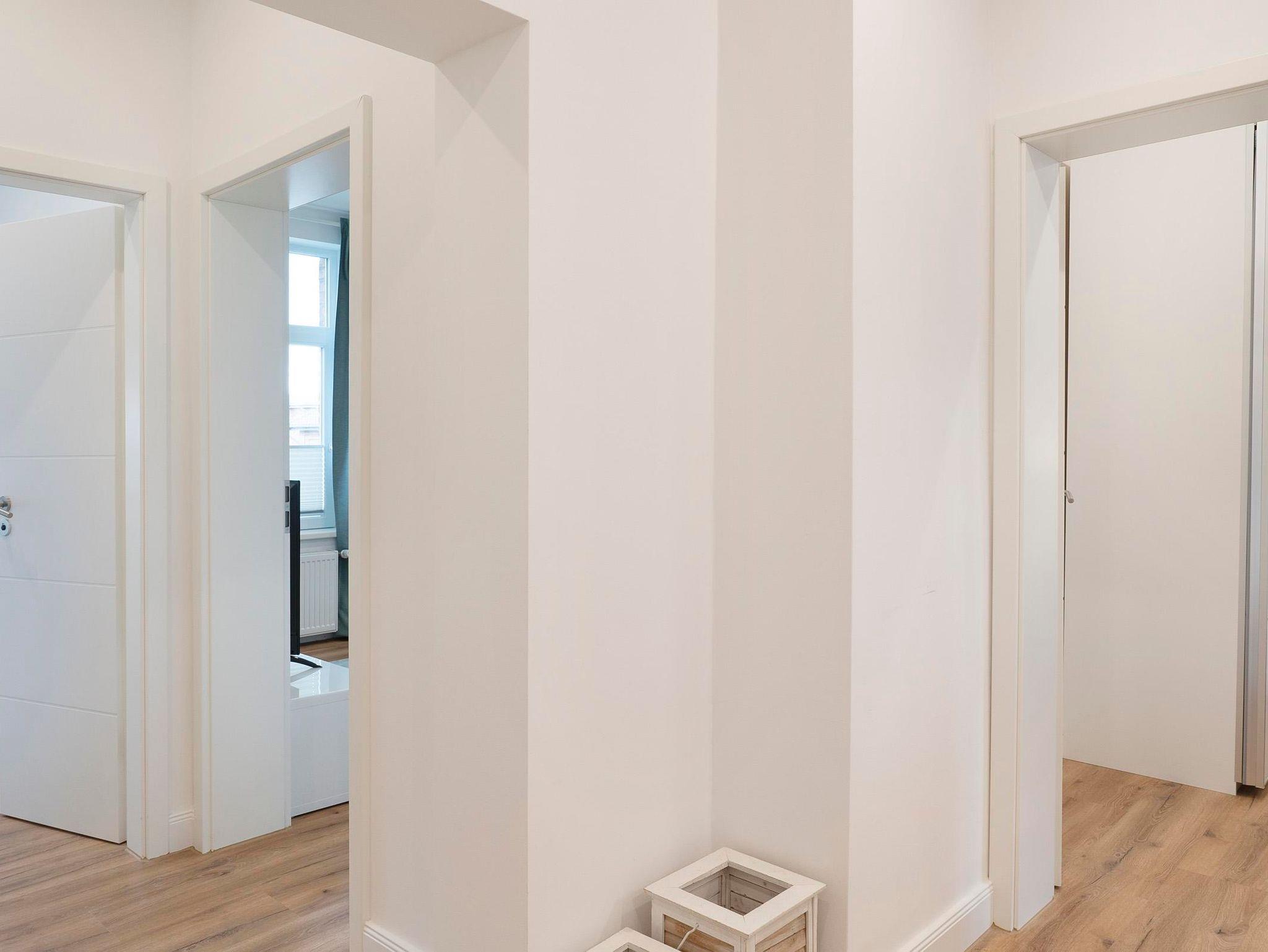 Die Wohnung liegt im Obergeschoss eines Mehrfamilienhauses in der Rosenstraße und überzeugt mit einem stilvollen Wohnambiente. Der Wohnbereich ist ausgestattet mit einem großen Ecksofa und einem gemütlichen Sessel und verfügt über einen Flachbild-TV. Auch im Schlafzimmer ist neben dem Doppelbett und einem geräumigen Kleiderschrank ein Flachbild-TV zu finden.