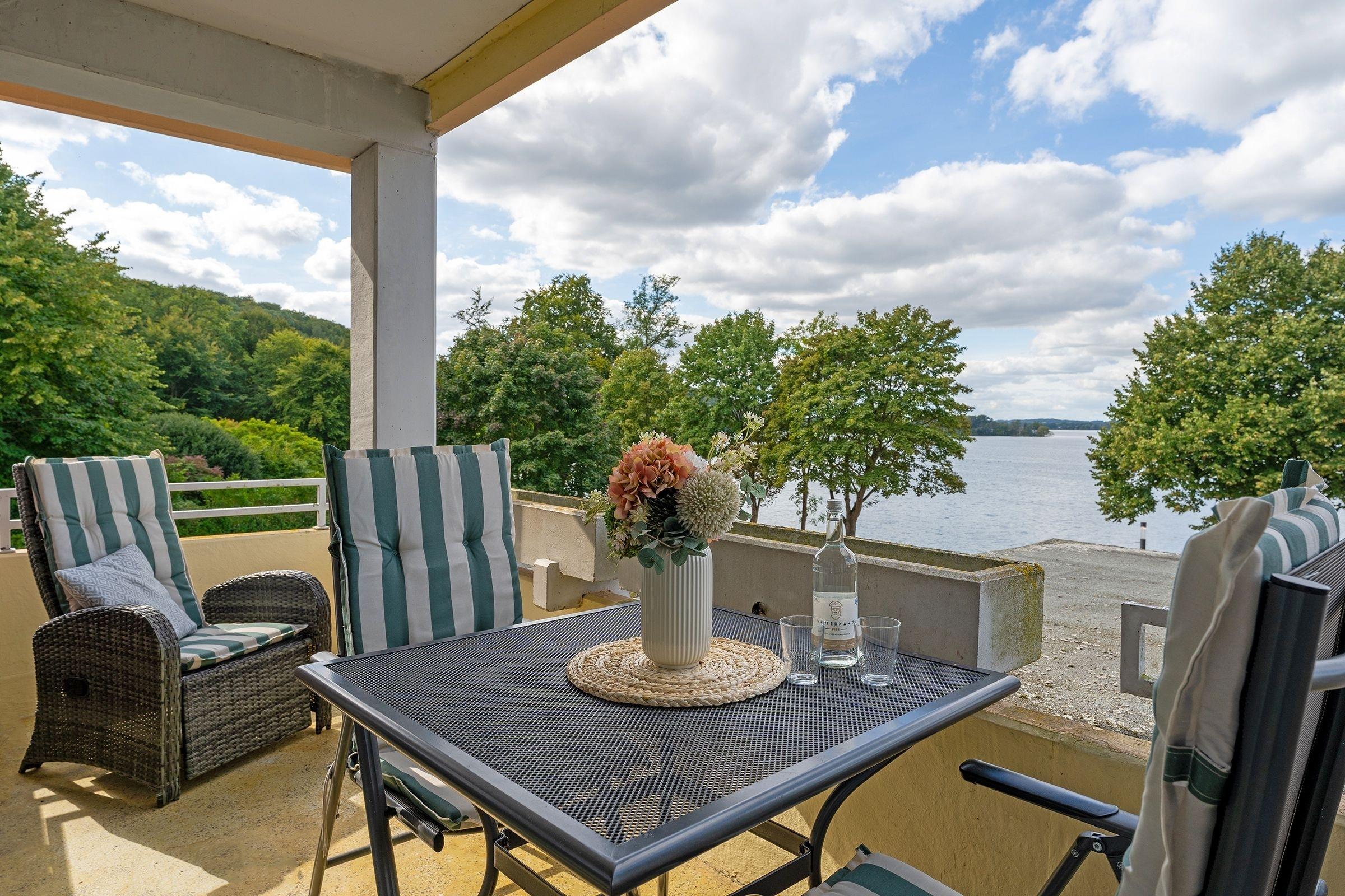 Der traumhafte Seeblick zeichnet diese geräumige 3-Zimmer-Ferienwohnung mit Balkon aus. Hier können bis zu 4 Personen auf ca. 67 m² Wohnfläche mit direktem Blick auf den Dieksee ihren Urlaub verbringen.