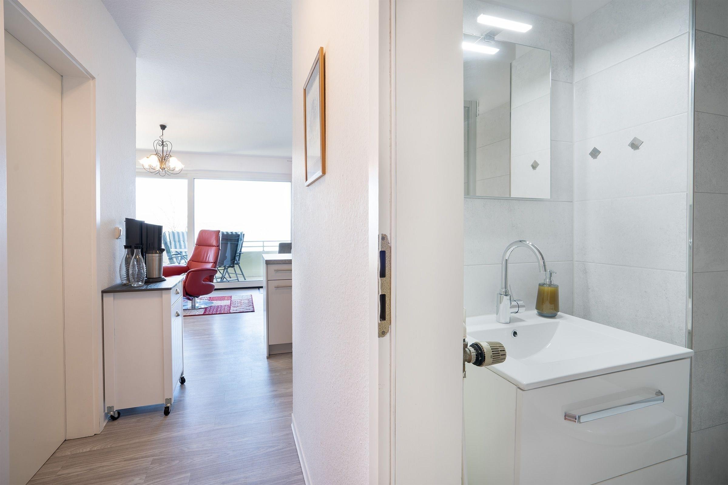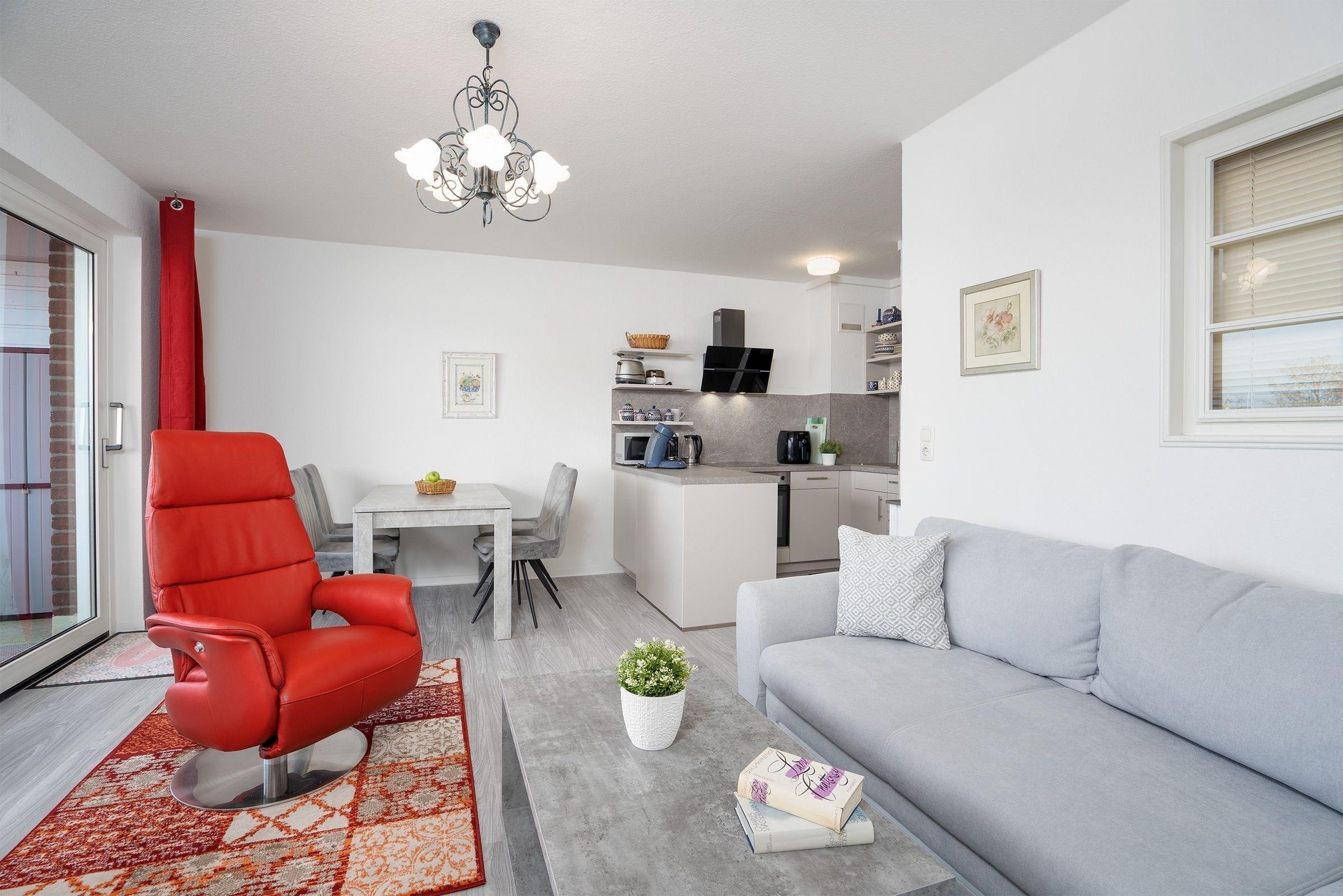 Mit den Fahrstuhl erreichen Sie bequem Ihr Feriendomizil im 1. OG des Hauses Dieksee Holm. Im hellen Wohnbereich können sie schöne Stunden auf dem gemütlichen Sofa vor dem großen Flachbildfernseher verbringen. Die offene, voll ausgestattete Küche verfügt über alle Annehmlichkeiten. Vom Flur aus gelangen Sie in die zwei separaten Schlafzimmer mit jeweils einem Doppelbett (2x 90x200 cm). In einem der beiden Schlafzimmer befindet sich ein Kleiderschrank, in dem anderen Schlafzimmer eine Kommode und ein weiterer Fernseher. Beide Räumlichkeiten lassen sich zur Nacht durch Jalousien bzw. Rollos angenehm abdunkeln. Gegenüber befinden sich zwei innenliegende Duschbäder für einen erfrischenden Start in den Tag. Das absolute Highlight ist der traumhafte Ausblick auf den Dieksee, den Sie direkt vom Wohnzimmer oder vom überdachten, möblierten Balkon aus genießen können.