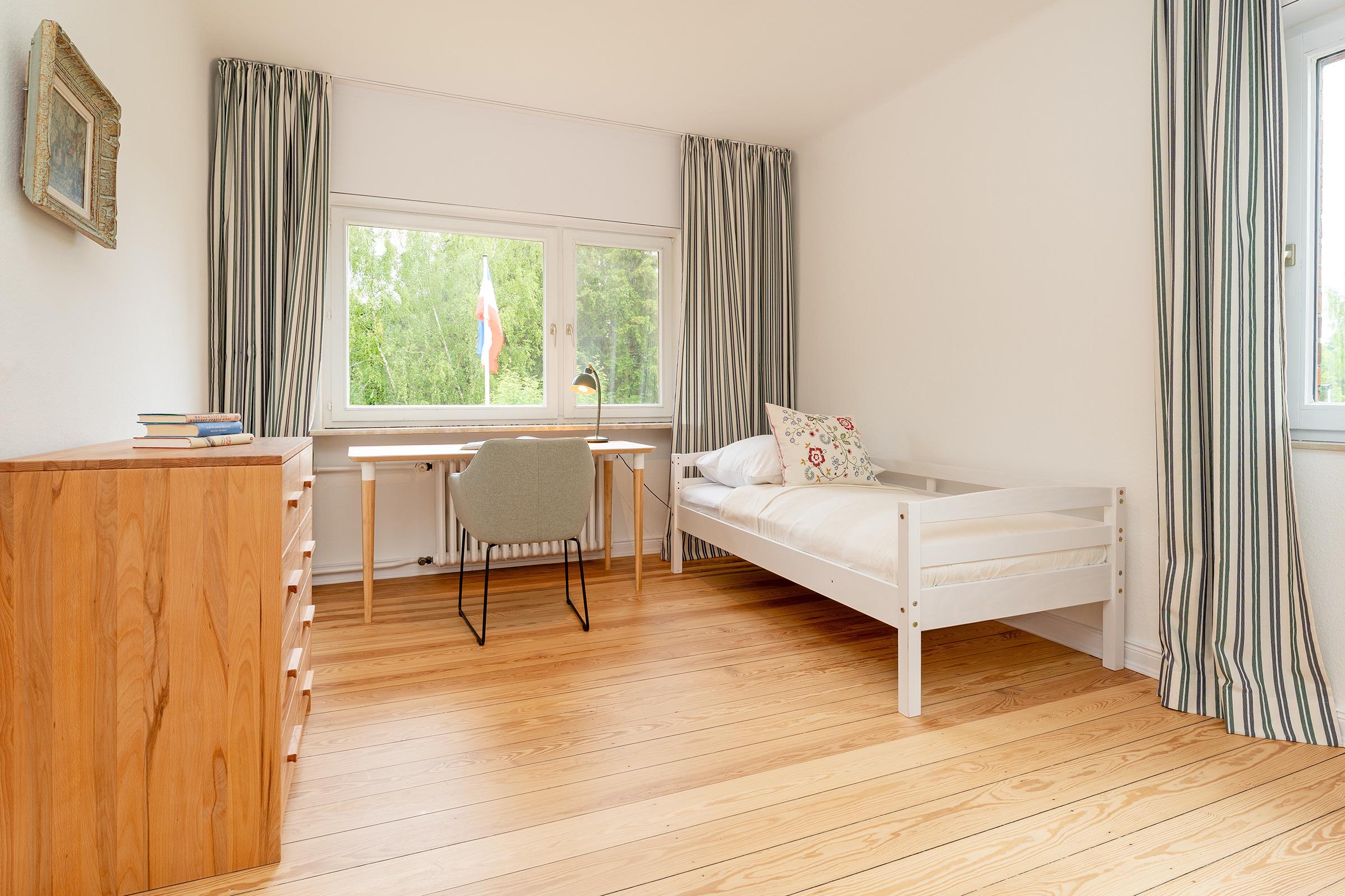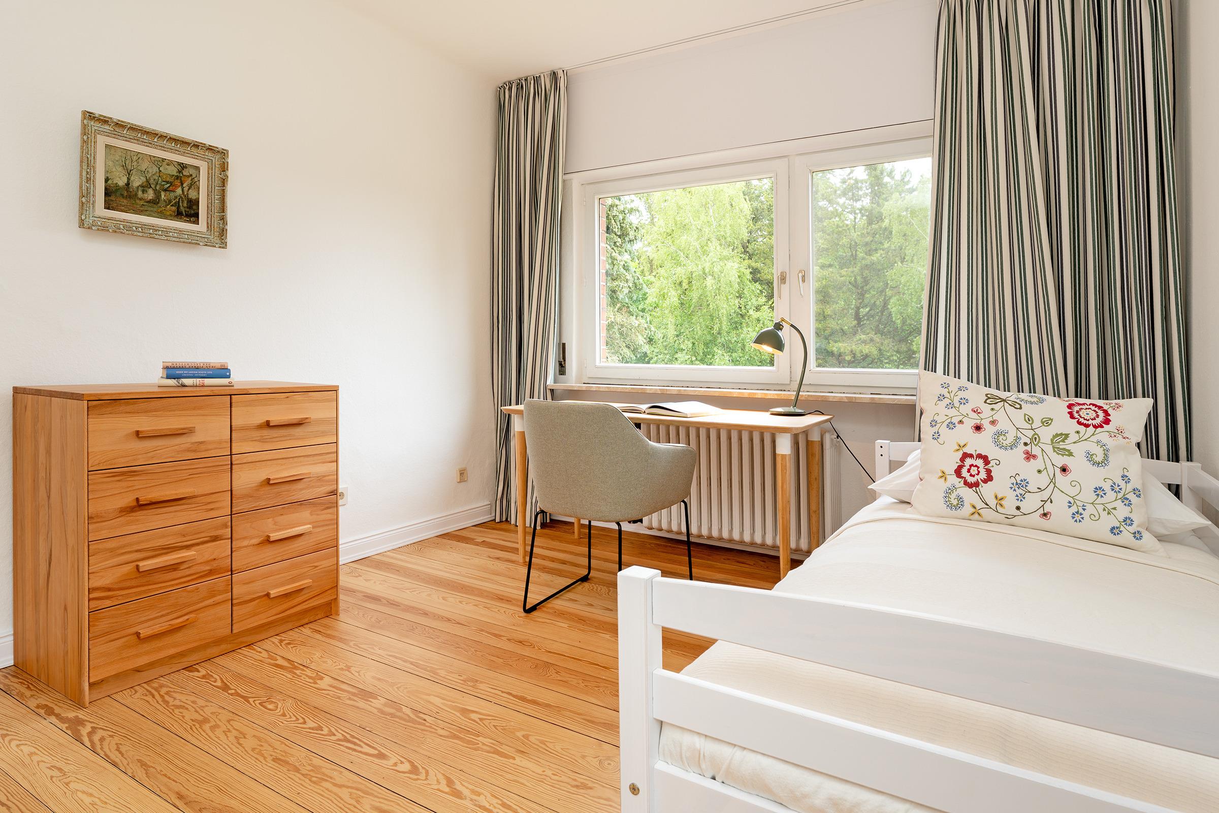 Schlafzimmer 4: Einzelbett (90x200 cm), Kommode, Verdunklungsmöglichkeit: Rollladen und Vorhänge