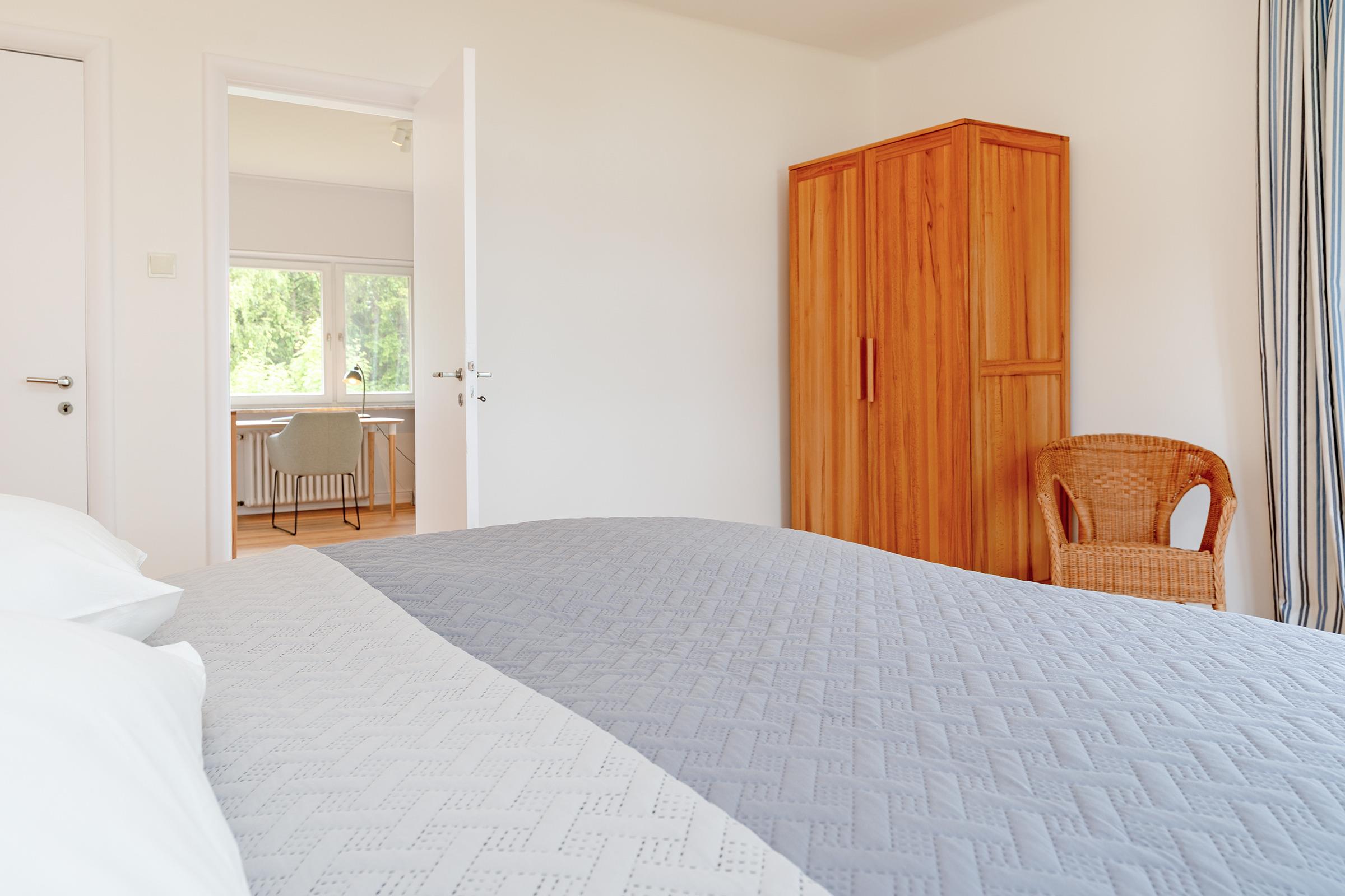 Schlafzimmer 2: Doppelbett (2x 90x200 cm), Kleiderschrank, Verdunklungsmöglichkeit: Vorhänge und Rollläden, Platz für Babybett vorhanden