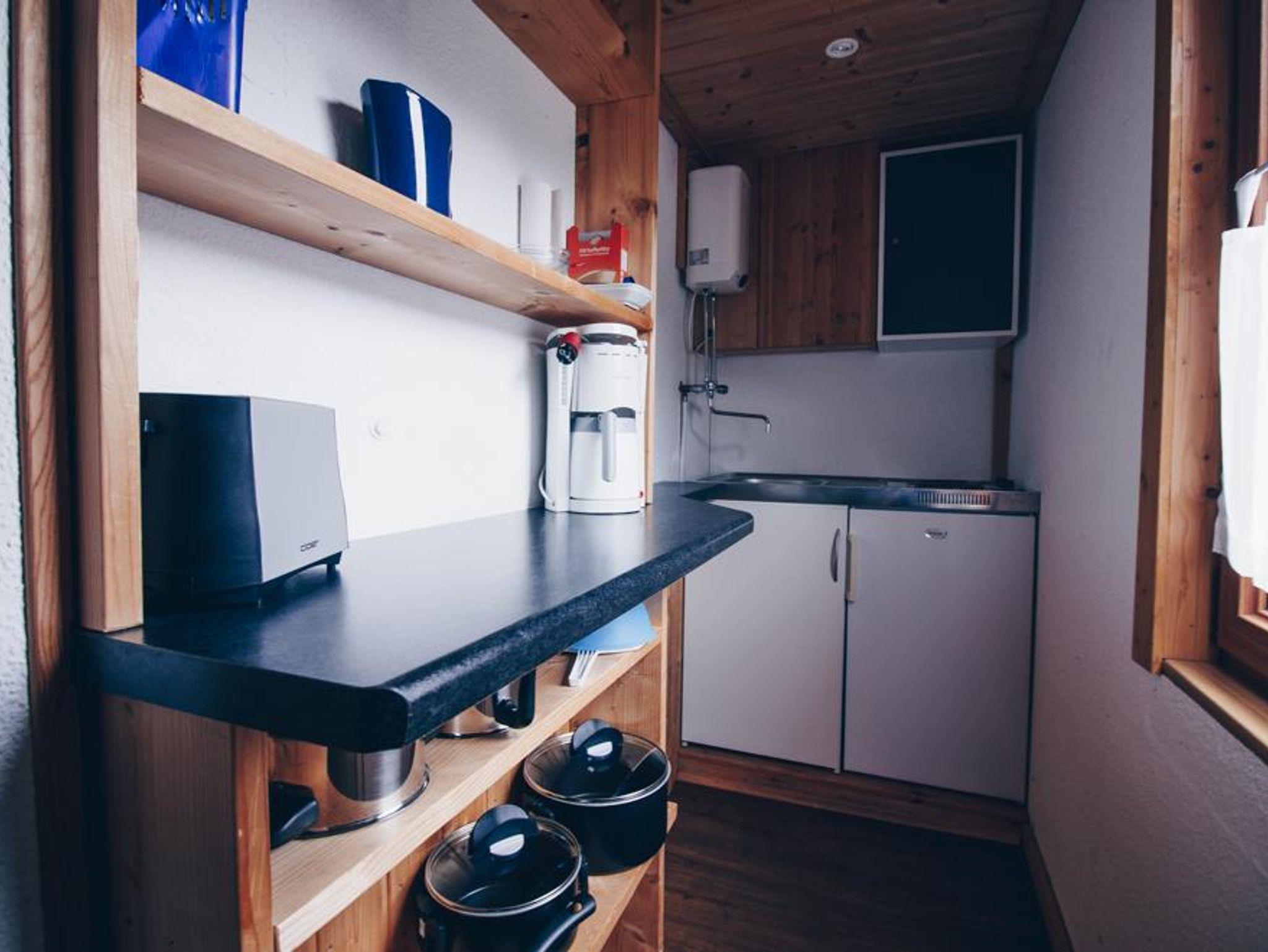 Unser Mini-Bungalow ist idyllisch für Paare – Er beeindruckt mit seiner schönen, überdachten Terrasse von der aus man einen Blick über das gesamte Naturcamp genießen kann. Das Schlafzimmer mit Doppelbett bietet genügend Stauraum. Der Wohnbereich sorgt mit seinem Kamin für romantische Abende, an denen ihr am knisternden Kaminfeuer entspannen könnt. Die anliegende kleine Küche ist mit zwei Herdplatten ausgestattet. Der Bungalow verfügt außerdem über ein eigenes Bad mit Dusche und WC. Euer PKW kann direkt vor dem Haus abgestellt werden. Wie bei allen Bungalows ist auch hier die Endreinigung und der Stromverbrauch im Preis inbegriffen. Eure Haustiere dürft ihr gerne gegen eine Gebühr mitbringen