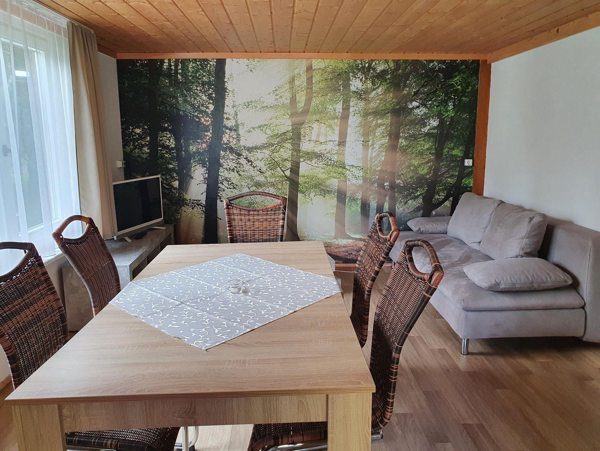 Ein gemütlicher Bungalow ist für einen Urlaub im Thüringer Wald genau das richtige. Unser neu renovierter Bungalow 10 bietet alles, was ihr für euren Aufenthalt im Naturcamp benötigt. Mit insgesamt drei Schlafzimmern mit zwei Doppelbetten, einem Einzelbett und einem ausziehbaren Sofa bietet er Platz für bis zu sieben Übernachtungsgäste und ist damit ein kleines Raumwunder. Im Wohnbereich findet ihr neben der Schlafcouch auch einen großen Esstisch. Die Mini-Küche ist mit zwei Herdplatten ausgestattet.
