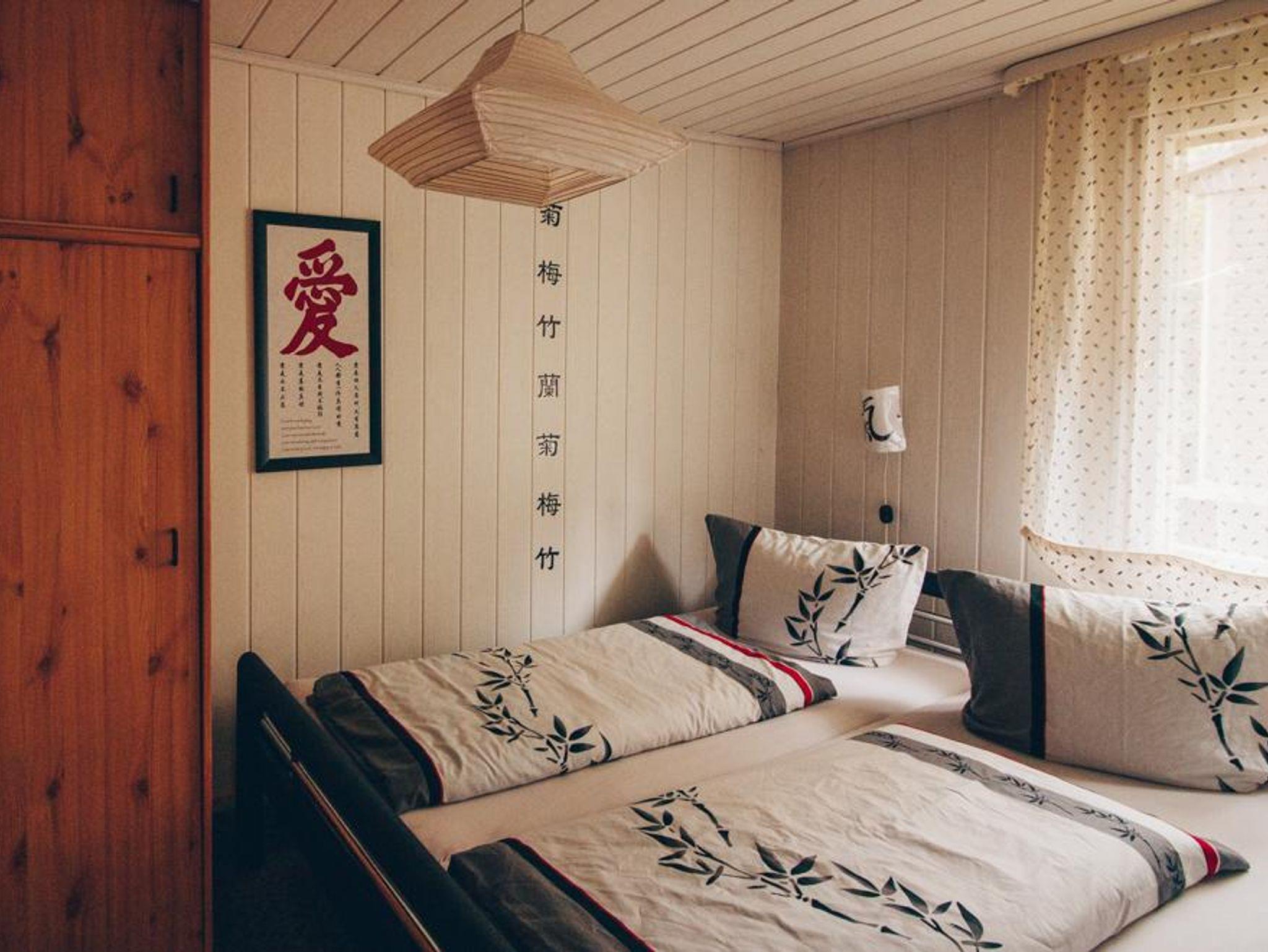 Erlebt in unserem Bungalow den besonderen Charme Asiens. Der Bungalow ist im asiatischen Stil gestaltet und bietet alles, was ihr für einen erholsamen Urlaub benötigt. Mit seiner komfortablen Größe und Ausstattung eignet sich dieser Bungalow ideal für einen Aufenthalt zu zweit. Die unmittelbare Nähe zu unserem Afrika-Bungalow bietet zudem die Möglichkeit, beide Unterkünfte gemeinsam zu buchen. Das Wohnzimmer verfügt über ein bequemes Ausziehsofa, das Platz für weitere zwei Personen bietet. In unserer kleinen Küche befindet sich ein Herd und ein Backofen.