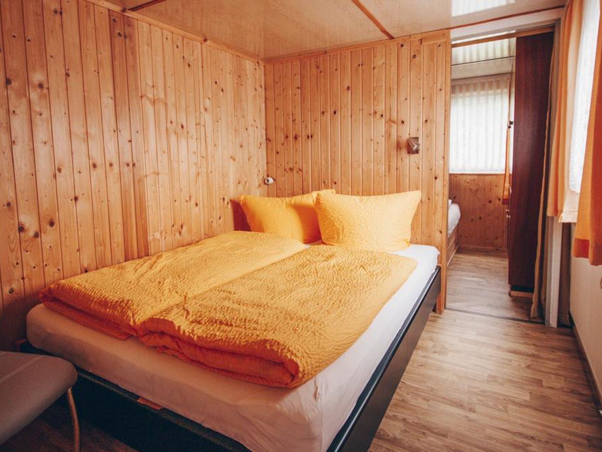 Unsere Bungalows 8 und 9 liegen direkt nebeneinander unweit der Grillstube. Es sind 6 Schlafmöglichkeiten vorhanden. Zwei Schlafzimmer, die durch einen Vorhang getrennt sind, besitzen je ein Doppelbett. In einem getrennten Schlafraum befindet sich ein Doppelstockbett. Das Sofa im Wohnzimmer kann nötigenfalls als zusätzliche Aufbettung genutzt werden.