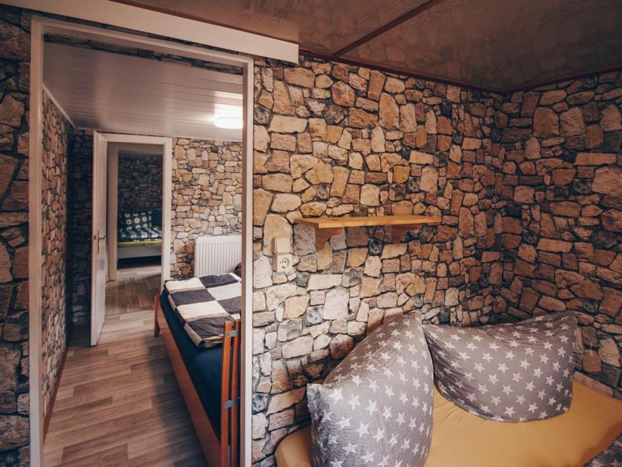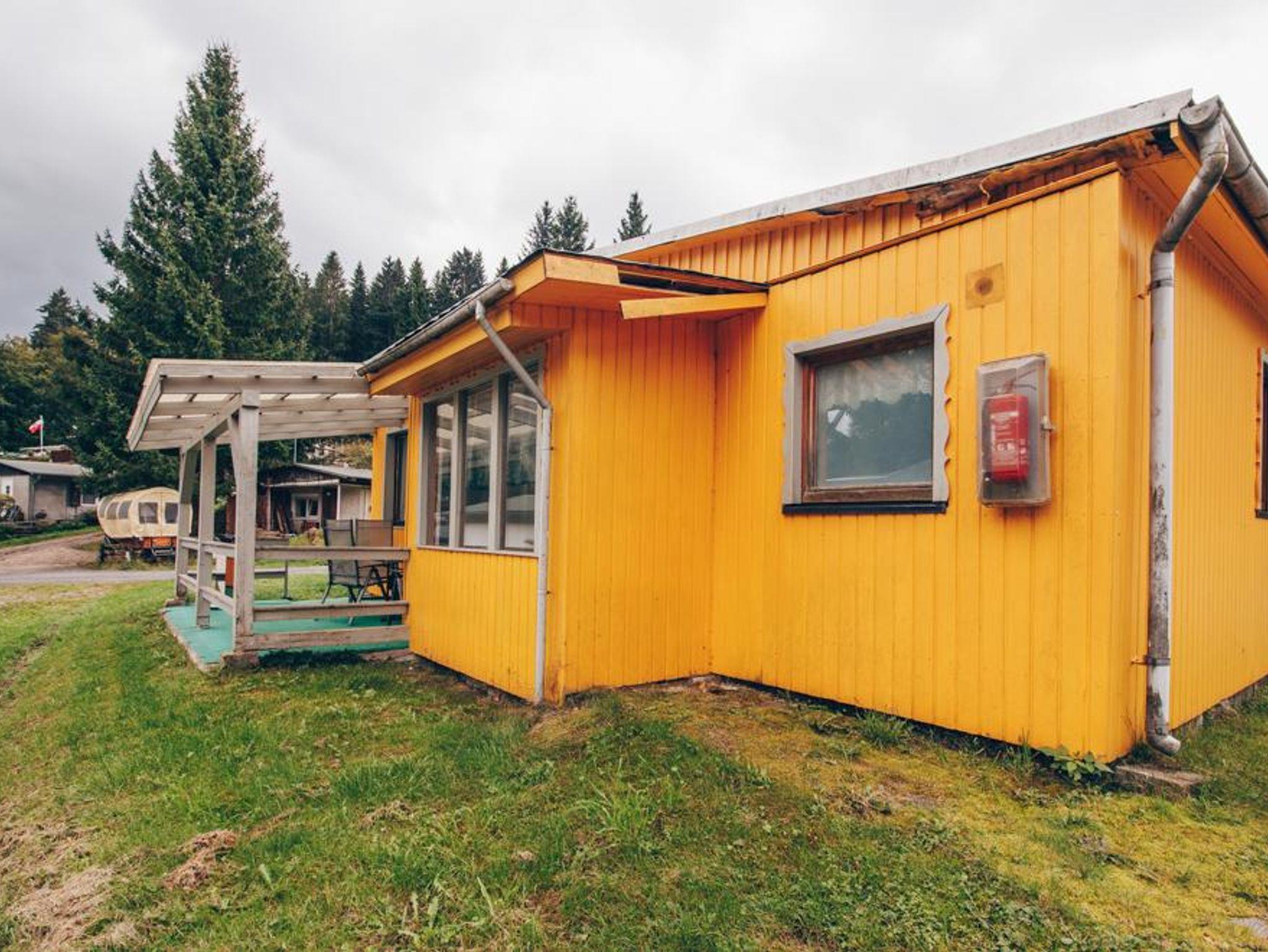 Mit unserem Bungalow 250a steht eurem Thüringer Wald-Urlaub gemeinsam mit Freunden oder der Großfamilie nichts im Wege. Am Hang gelegen ist dieser sonnengelbe Bungalow ein wahres Raumwunder, denn hier bietet sich Platz für bis zu 8 Personen. Der großzügige Schlafbereich ohne Zwischentüren ist mit drei Schlafzimmern mit jeweils einem Doppelbett ausgestattet. Das kleine, aber gemütliche Wohnzimmer sorgt für Bequemlichkeit. Dort bietet sich auf der Schlafcouch Platz für eine Person. Die Küche ist mit einem Herd und Backofen ausgestattet und das Bad bietet eine Dusche und WC. Vor dem Bungalow befindet sich eine überdachte Terrasse. Sie bietet den idealen Ort für laue Sommerabende für deinen Thürunger Wald-Urlaub. Direkt vor der Unterkunft befindet sich außerdem ein Stellplatz für deinen PKW. Auch deine Haustiere sind bei uns herzlich Willkommen, gegen eine Gebühr kannst du sie mitbringen.
