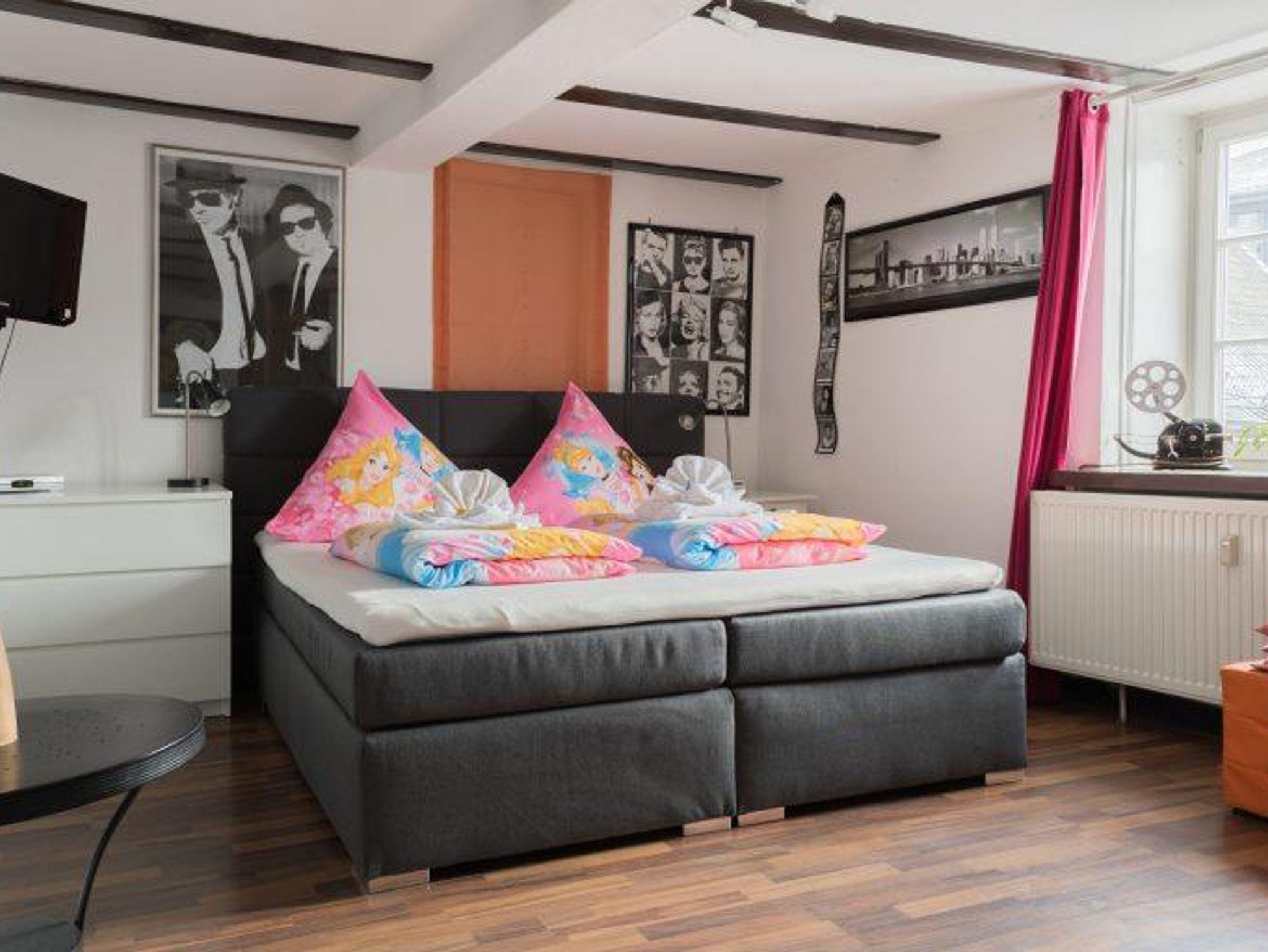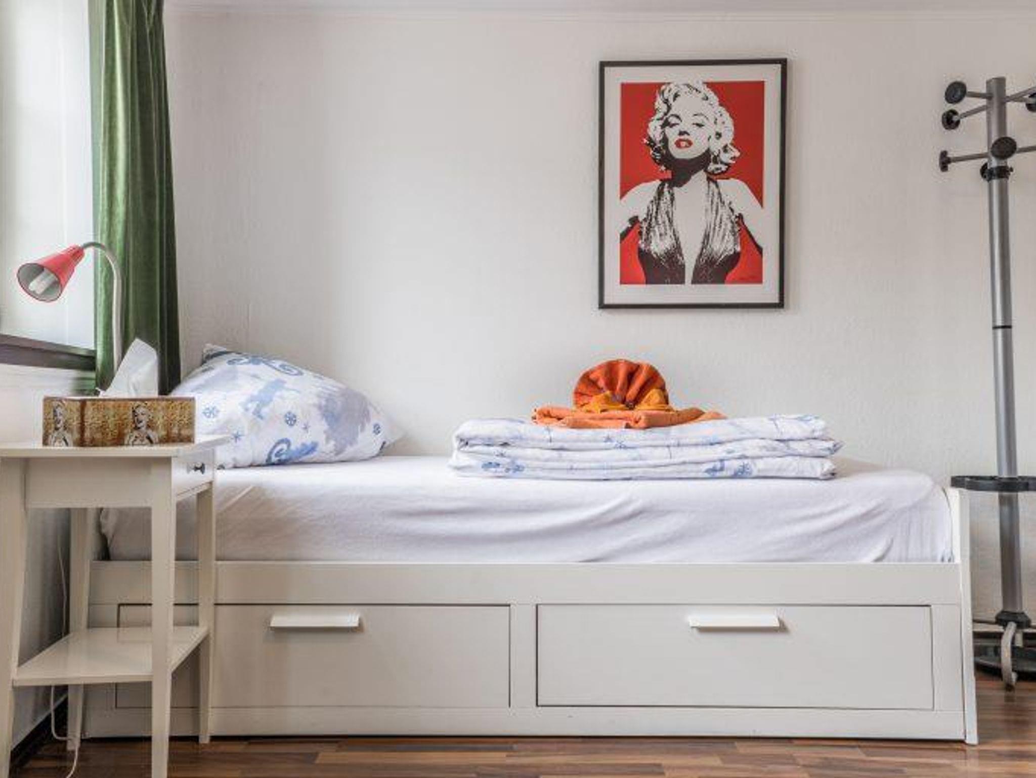 Die Cinema-Suite ist besonders Familien geeignet. Sie liegt im Erdgeschoss unseres Hauses und bietet Ihnen vier Schlafmöglichkeiten (zwei Doppelbetten je 1,60×2,00m sowie 1,80×2,00m)in zwei getrennten Zimmern. Die Küche befindet sich in einem separaten Raum, der über einen ebenerdigen Zugang zum Garten verfügt.
