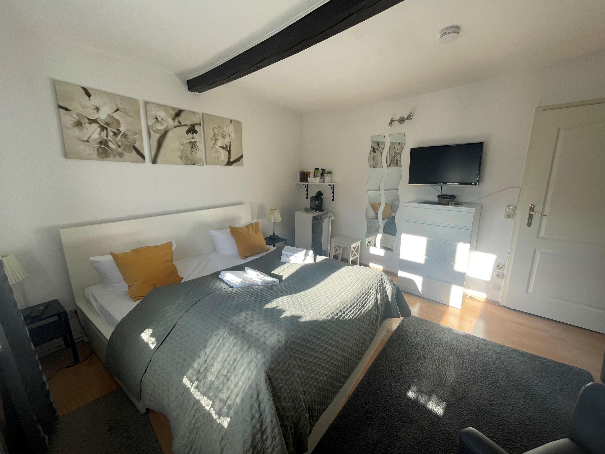• Zimmerinfo: 1 Doppelbett. Das Zimmer befindet sich im Dachgeschoss. Im Flur steht ein Etagenbad zur verfügung.