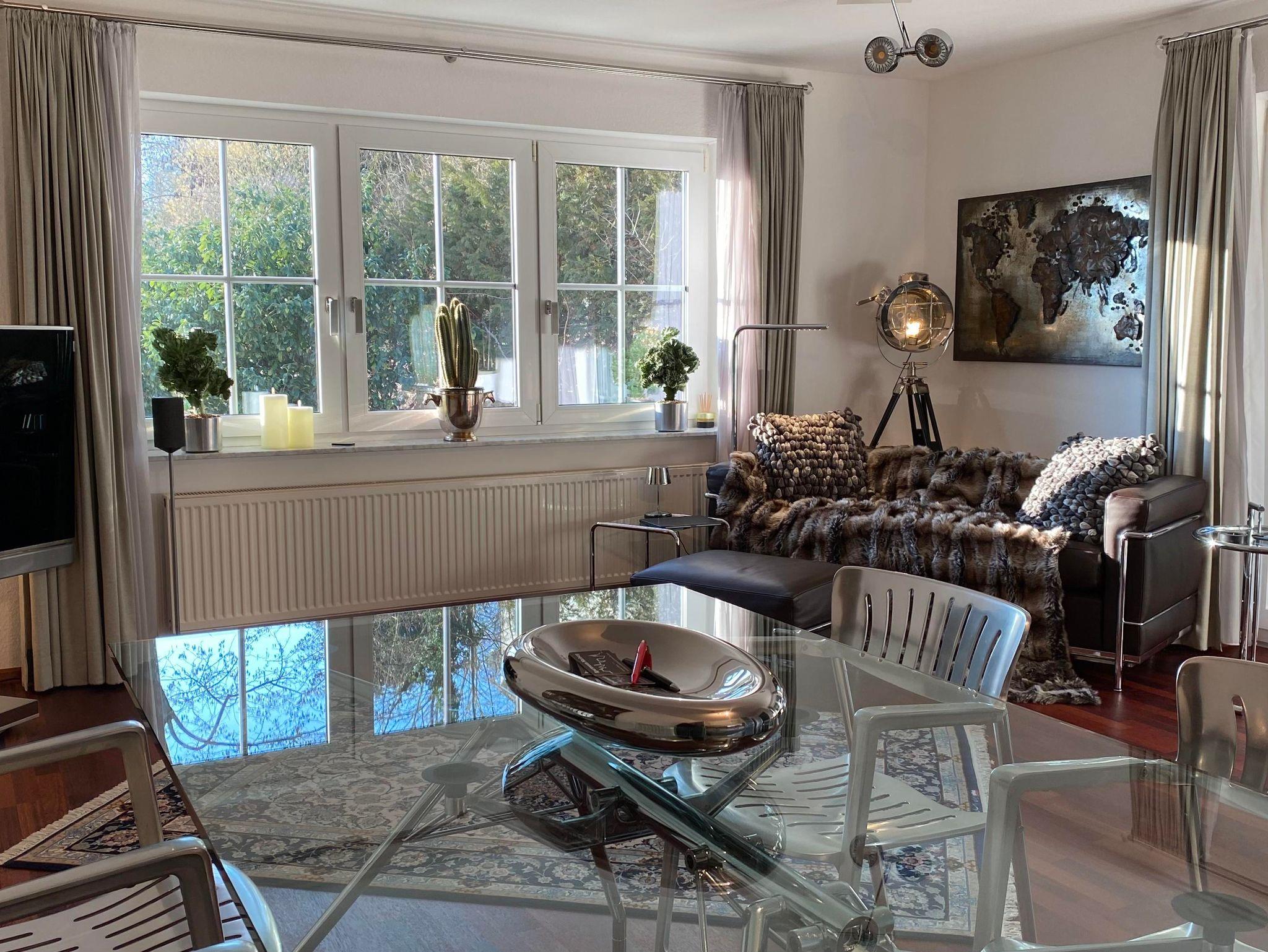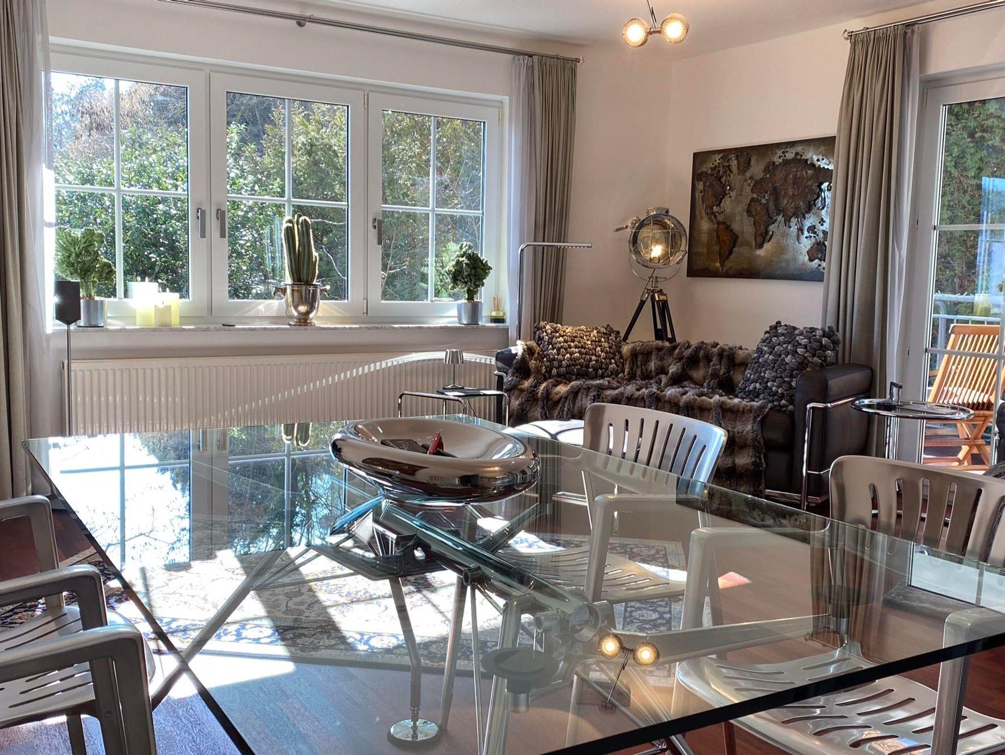 ATRIUM 90qm Loft Apartment 2.Stock,Balkon,3 Zimmer,2 Bäder,1 begehbarer Kleiderschrank,im gleichen Hause wie auch DOMICIL,PRO-TEMPORE,REFUGIUM.Grosser Balkon mit Teak Deckchairs,Stühlen und Tisch.Bulthaup Küche,Joop!Designerbäder mit Badewanne und Tageslicht,Joop!Gäste WC.Bauhausmöbel von Cassina,Classicon und Thonet.Voll-Home-Office fähiges Arbeitszimmer mit Telefon und High Speed Internet,I Pad.Palisander Parkett,Nespresso Bar in WZ,2 Loewe LED TV in Schlafzimmer und Wohnzimmer,Parkplatz auf eigenem Grundstück,Bushaltestellen direkt vor Ort in 50 Meter Entfernung.EKZ 650Meter Tegut,Lidl,Aldi,OBI,Expert.Stadtmitte in 5 Min. erreichbar.Golfplatz,Schwimmbad,Tennishalle,Fahrradweg in unmittelbarer Nähe.Das Gebäude steht ca.300Meter von der Lahn entfernt.Alles ebenerdig,prädestiniert zum Wandern und Fahrrad fahren.Alle Apartments sind 5*****Sterne zertifiziert DTV ( Deutscher Touristik Verband ).