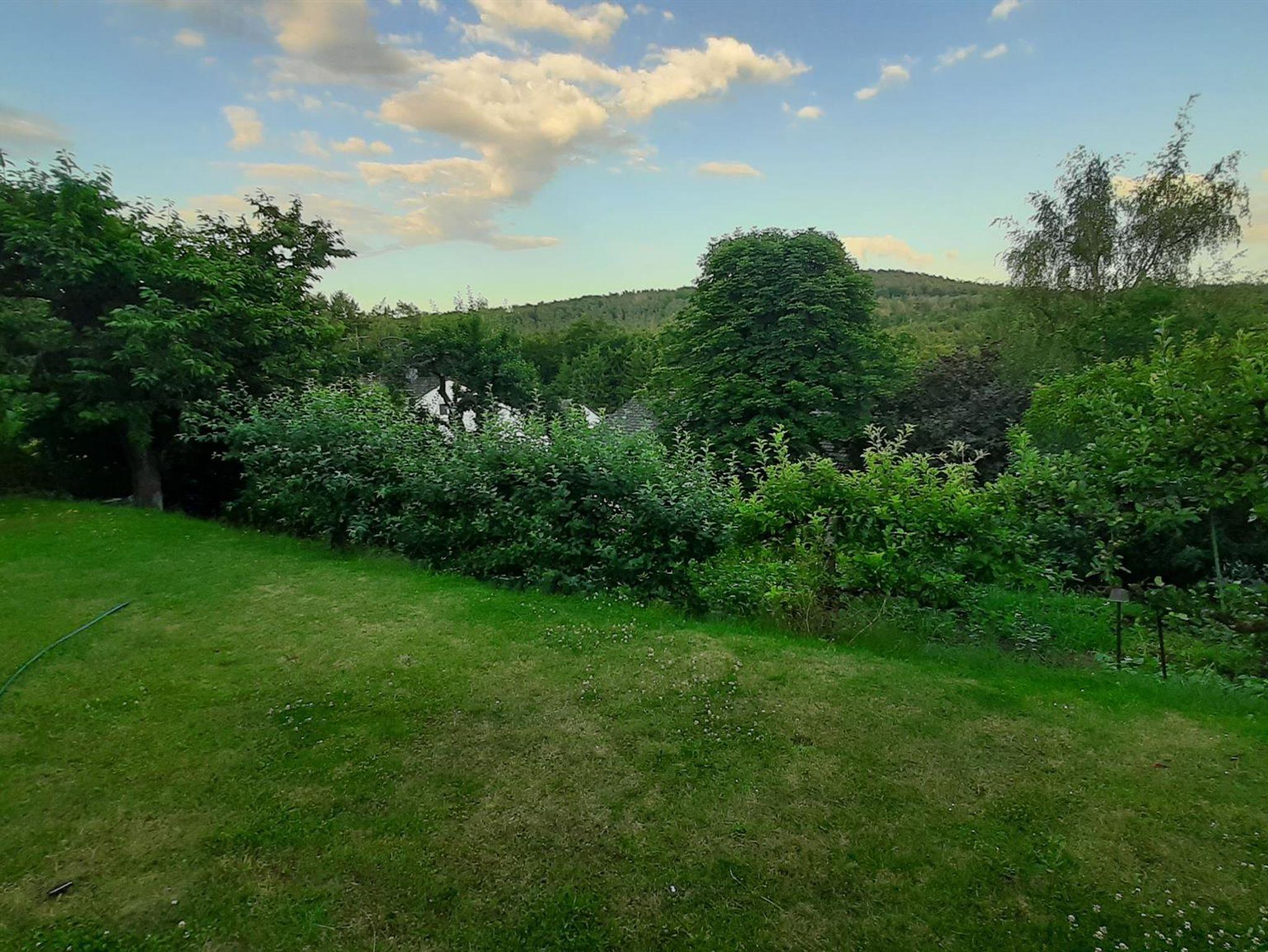 Die Ferienwohnung bietet auf 42 Quadratmetern Platz für bis zu 3 Personen. Ideal geeignet für zwei Personen mit einen Doppeltbett im Schlafzimmer mit Schrank, Kofferablage und schönen Ausblick in den Garten. Die Wohnküche bietet eine Küchenzeile mit vier Kochplatten und einem Backofen, Kühlschrank, Kaffeemaschine und Wasserkocher sowie einem Frühstückstisch. Die Küche wurde im April 2025 erneuert. Ein zweier Sofa lädt zum verweilen und zum Fernsehen mit verschiedenen nationalen und internationalen Programmen über Satellit ein. Ein Schreibtisch und ein ausklappbares Schrankbett für die Übernachtung einer 3. Person erweitern den Service. Ein Bad mit Dusche, WC und Fenster sowie Handtüchern und Bettwäsche stehen zur Verfügung. Im Garten können Sie den Waldblick genießen. Gegen Aufpreis und nach Absprache können Sie gerne auch die in 2021 erstellte Gartensauna zur individuellen Nutzung buchen.