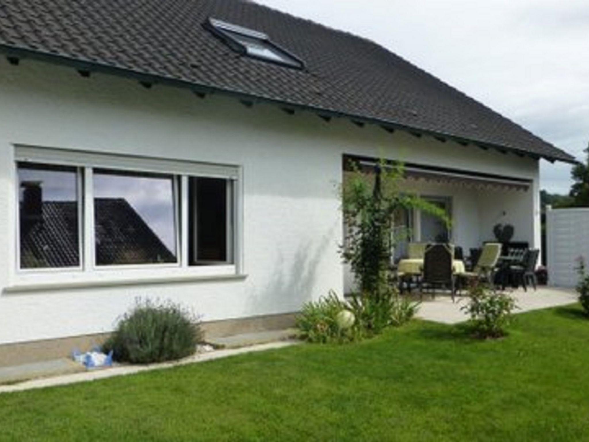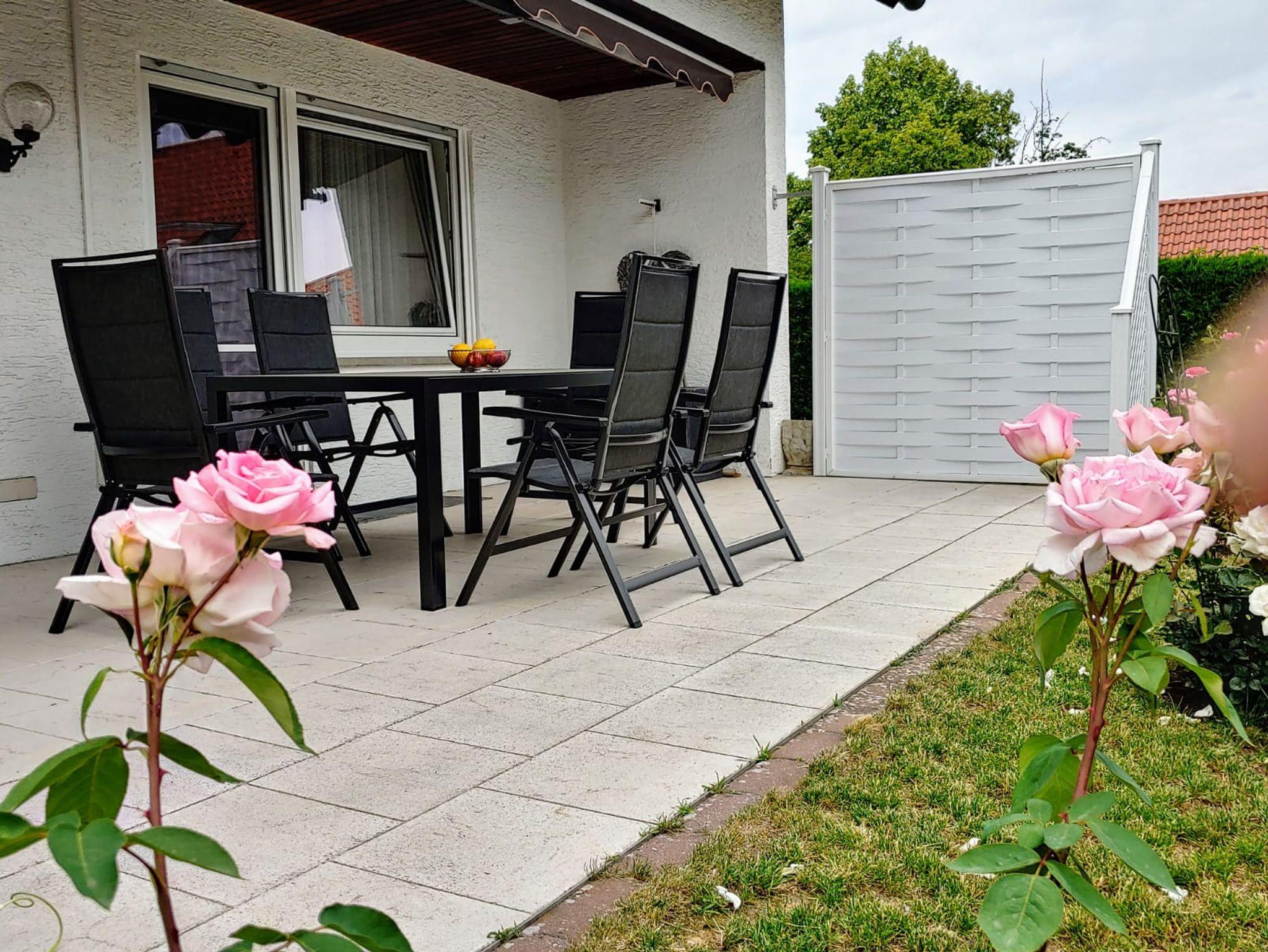 Das Haus ist ebenerdig angelegt und hat einen barrierefreien Zugang zu der 90 qm großen Ferienwohnung im Erdgeschoss. Das Grundstück ist abgeschlossen. Im Garten befindet sich ein Fahrrad-Unterstellplatz, ein Freisitz und eine große 24 qm sonnige Terrasse, mit Markise. Parkmöglichkeiten sind außerhalb des Grundstücks vorhanden.