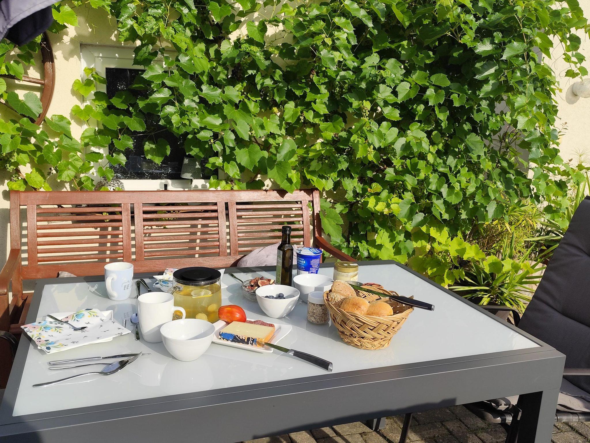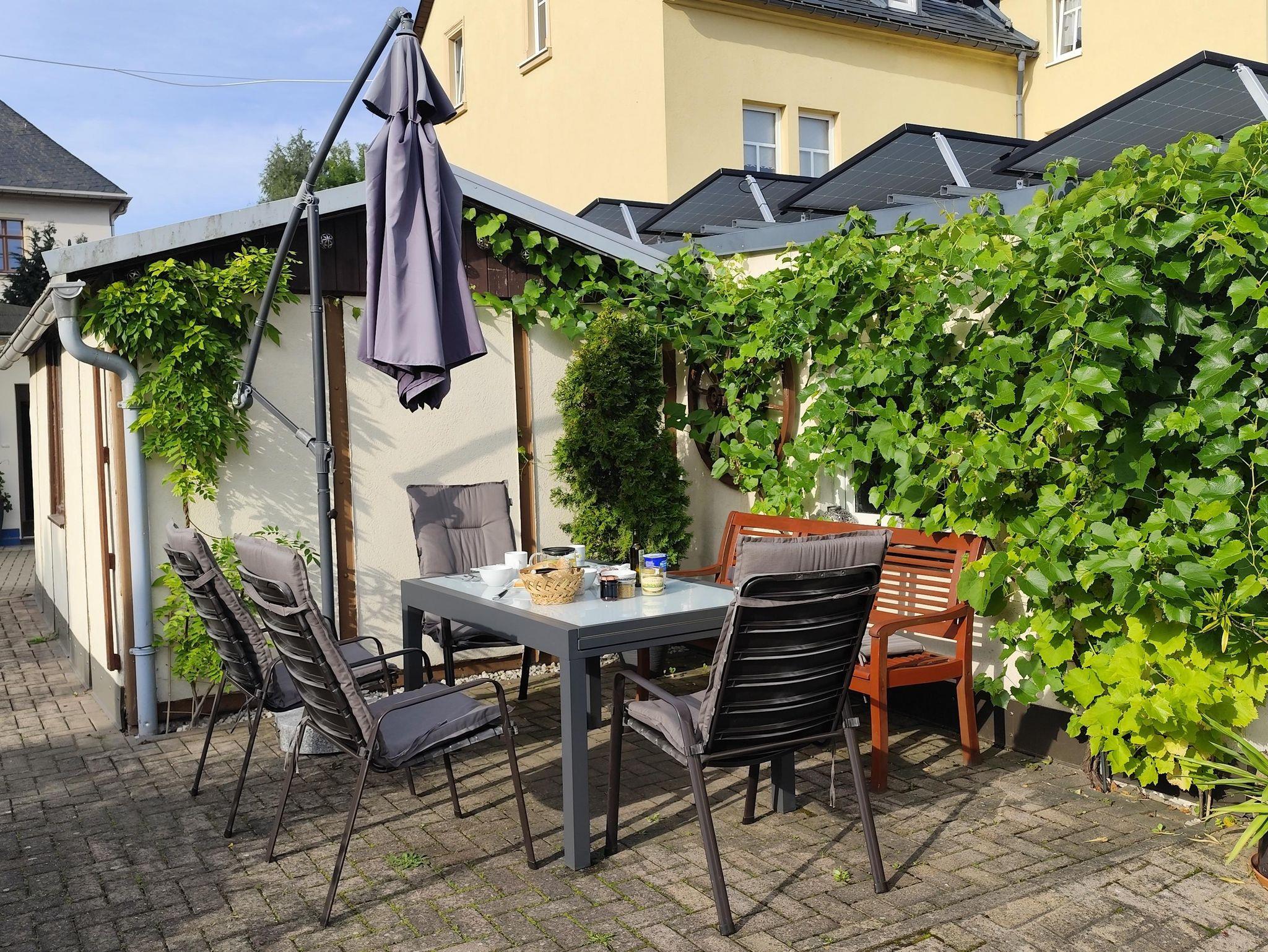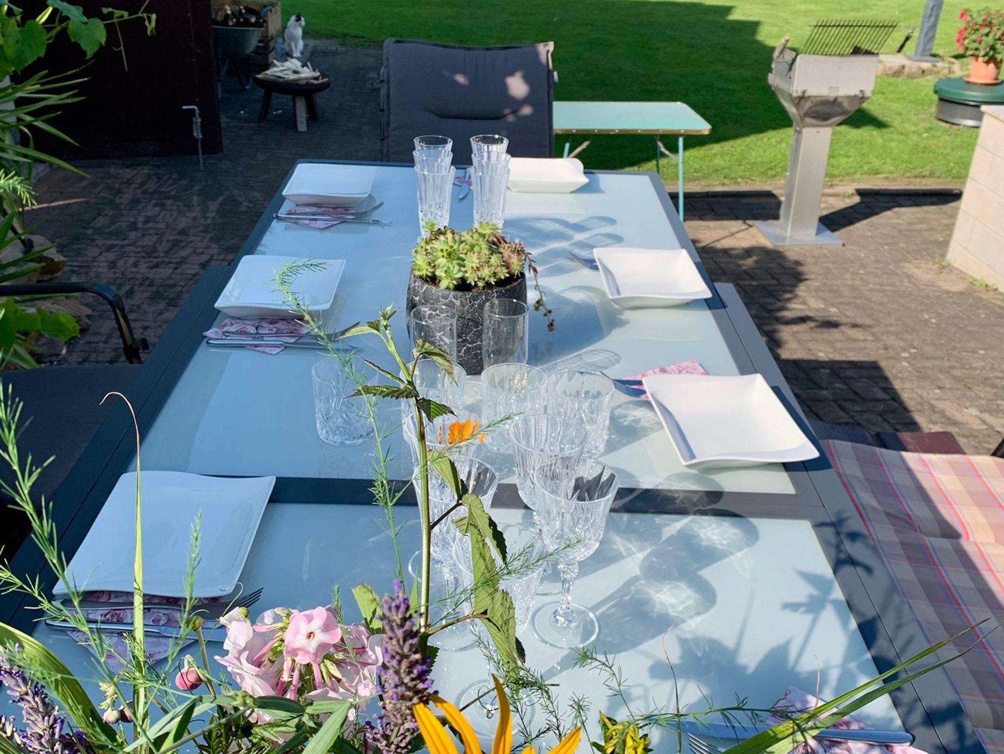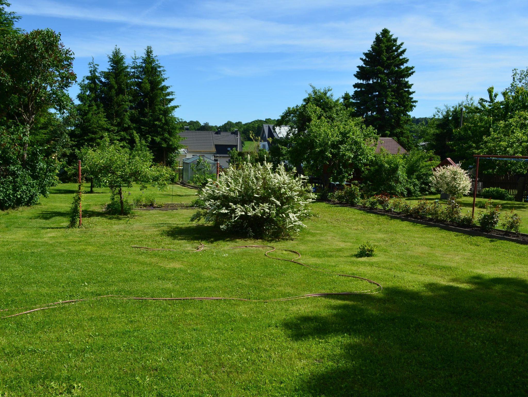 Ein großer Garten lädt mit gemütlicher Sitzecke und Grillmöglichkeit zum Verweilen ein.